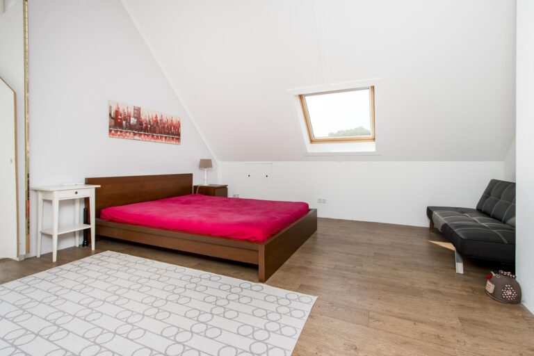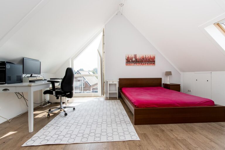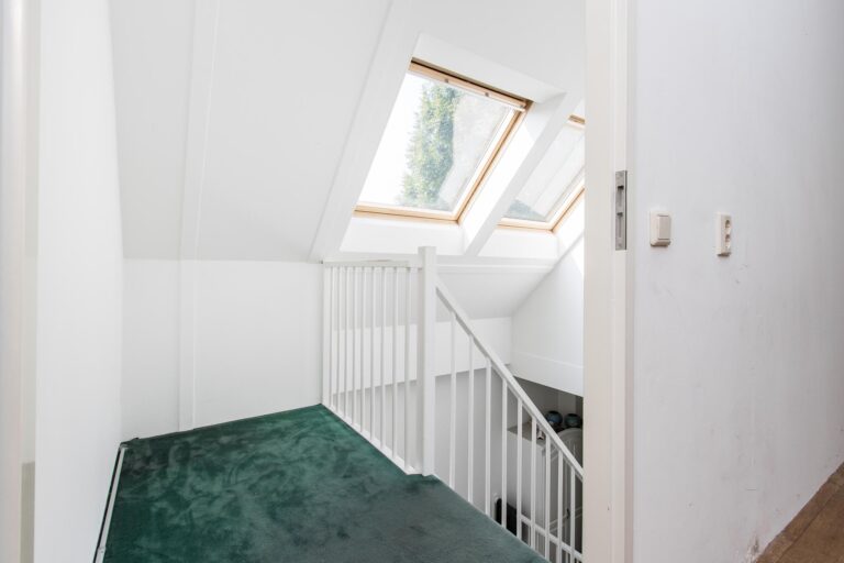 Tweede verdieping: via een vaste trap bereikt u de tweede verdieping, waar een royale zolderkamer is gelegen. Hier vindt u de CV-installatie en de aansluitingen voor de wasmachine en droger. Vanuit de zolderkamer heeft u toegang tot de 4e slaapkamer. Dankzij de dakvensters baadt deze ruimte in een overvloed aan natuurlijk licht.