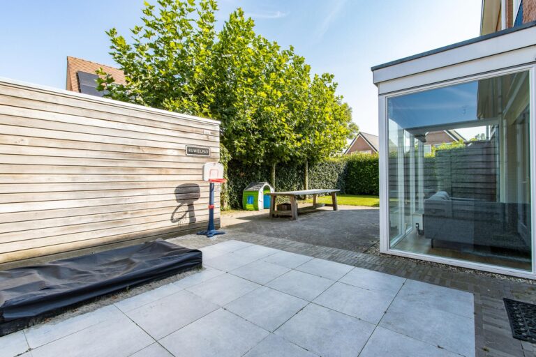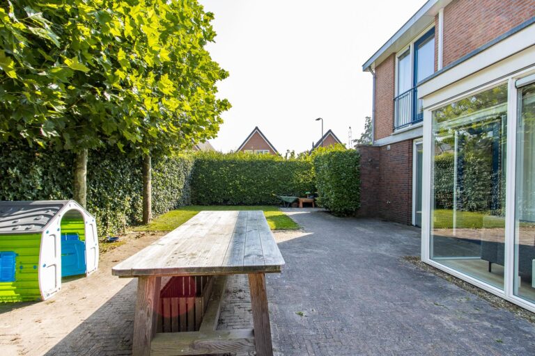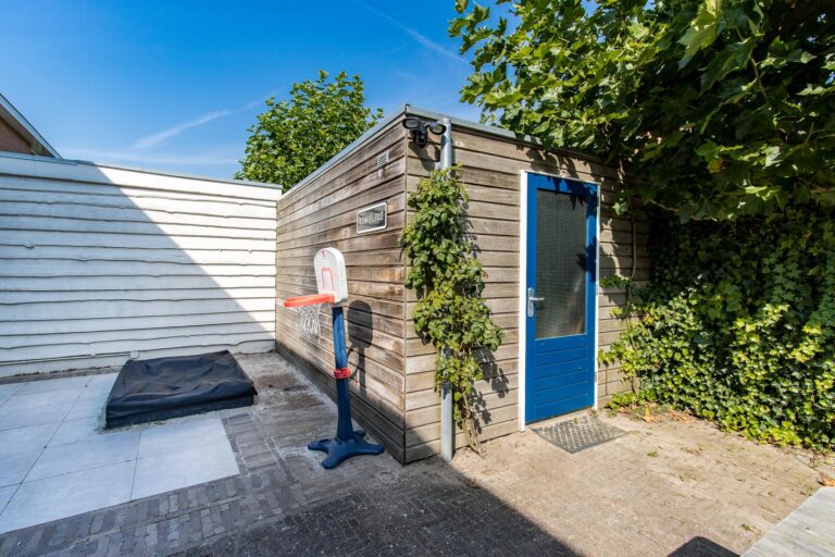Buiten treft u een onderhoudsvriendelijke tuin op het oosten, ingericht met een fraai gazon, sierbestrating en moderne terrastegels. De tuin biedt zowel zonnige plekken als voldoende schaduw voor ontspanning. Aan de voorzijde van de woning bevindt zich een eigen oprit en een vrijstaande berging, aangevuld met 2 extra bergingen aan de woning voor extra opslagruimte.