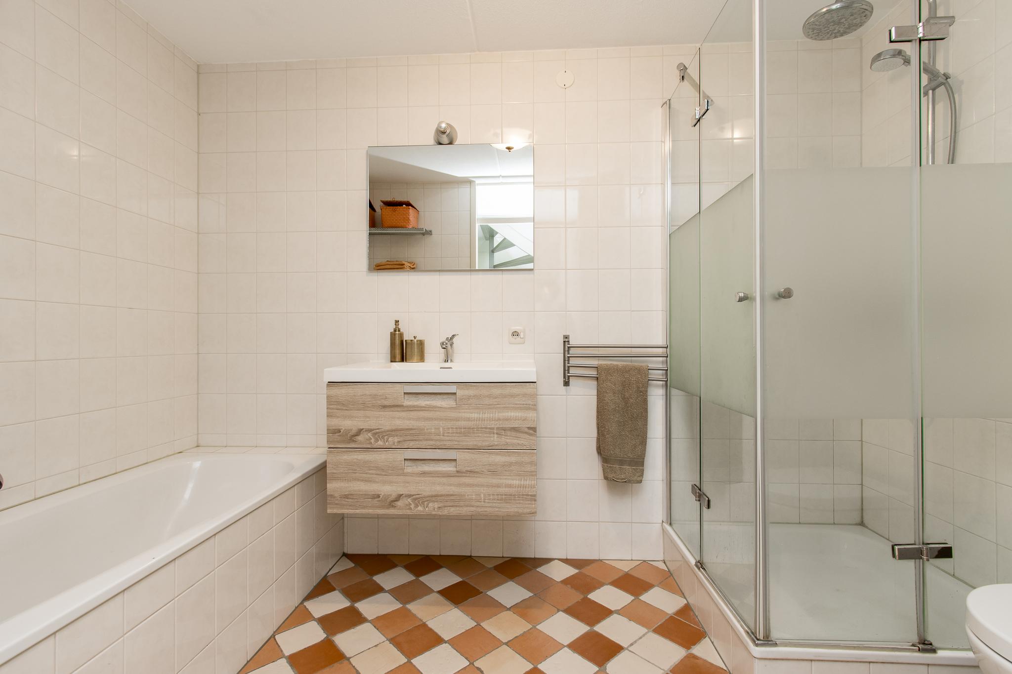 Eerste verdieping: de overloop geeft toegang tot 2 ruime slaapkamers en de badkamer voorzien van ligbad, douche, wastafelmeubel en toilet.