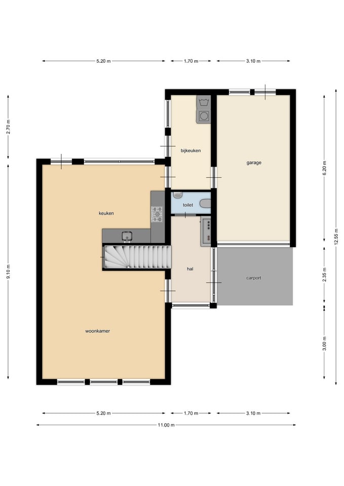 – inpandige garage met carport;