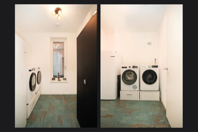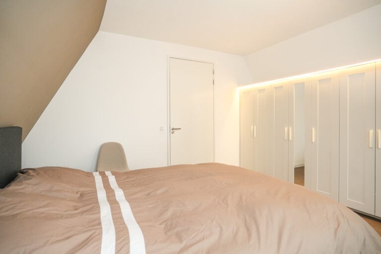 Aansluitend aan de keuken bevindt zich de praktische bijkeuken met witgoedaansluitingen. Vanuit hier bereik je de ruime slaapkamer op de begane grond met aangrenzende badkamer. De badkamer is voorzien van een inloopdouche met sunshower (UV-/infrarood), een wandcloset, een badkamermeubel en comfortabele vloerverwarming.