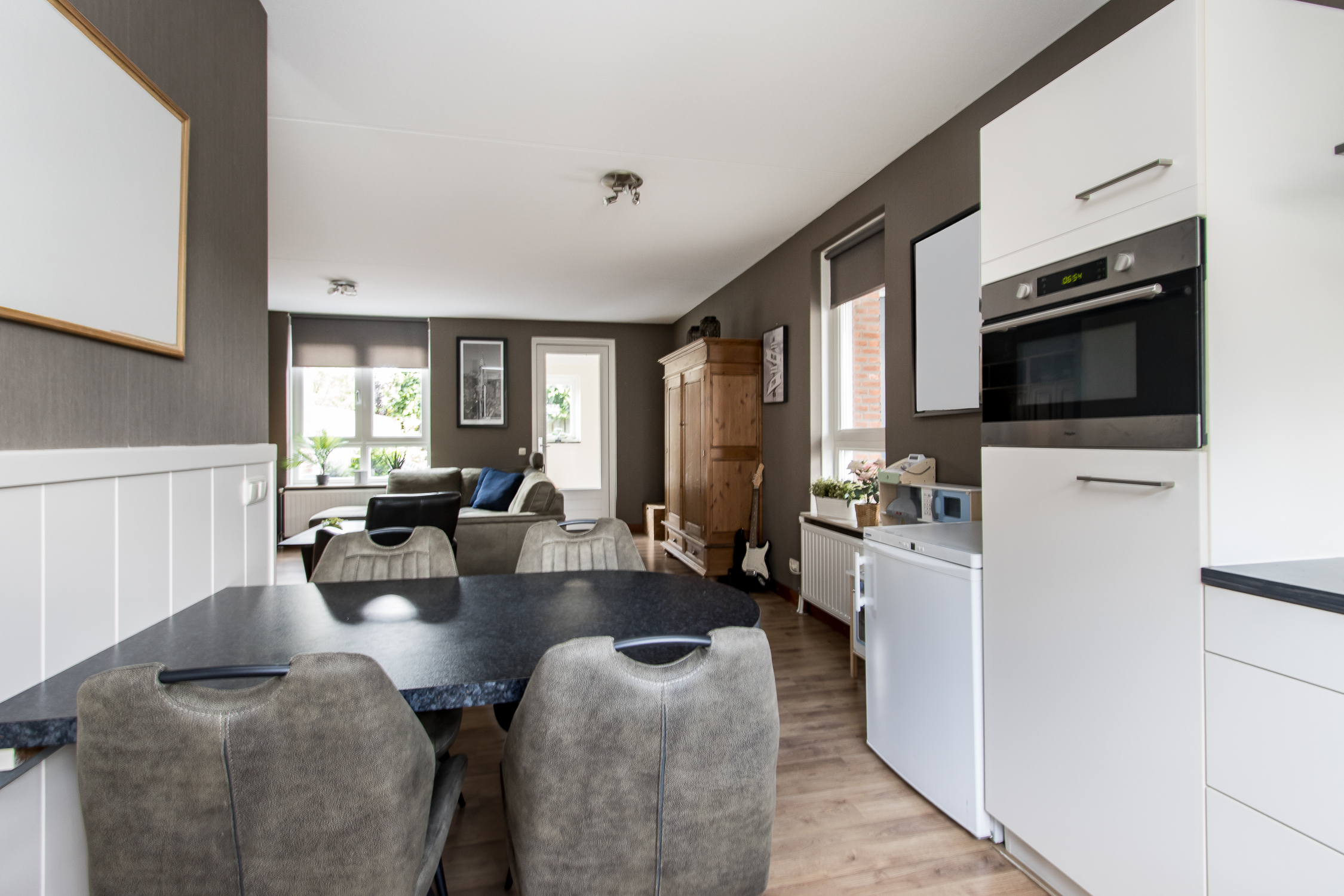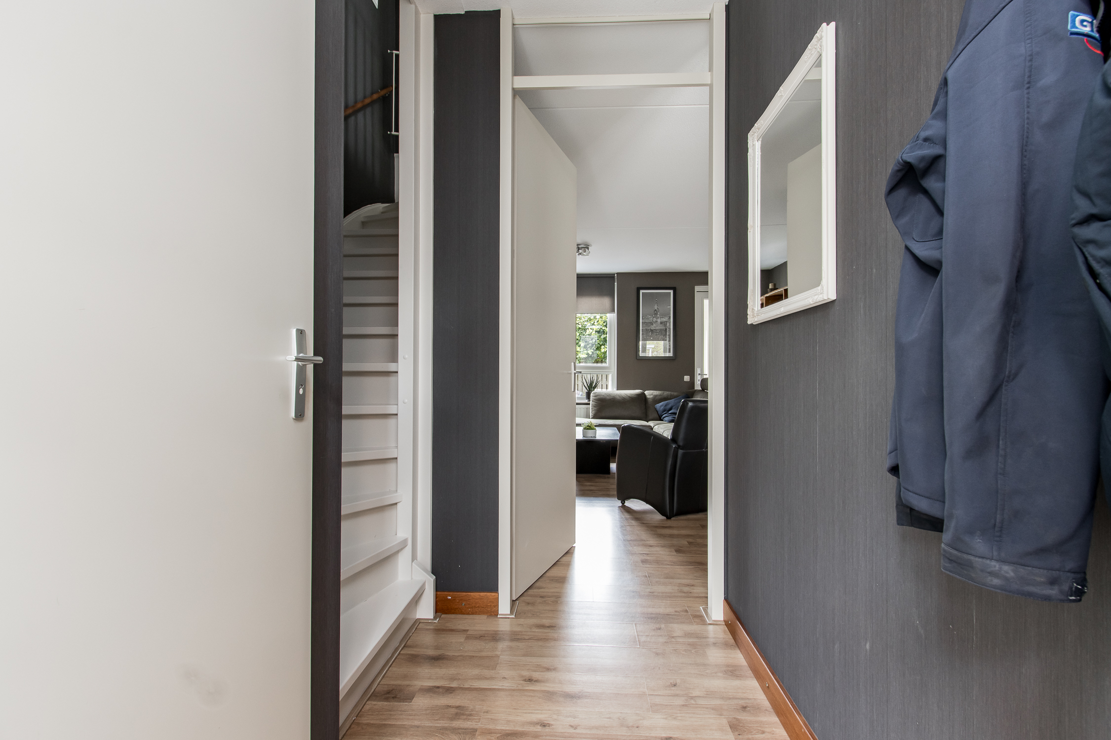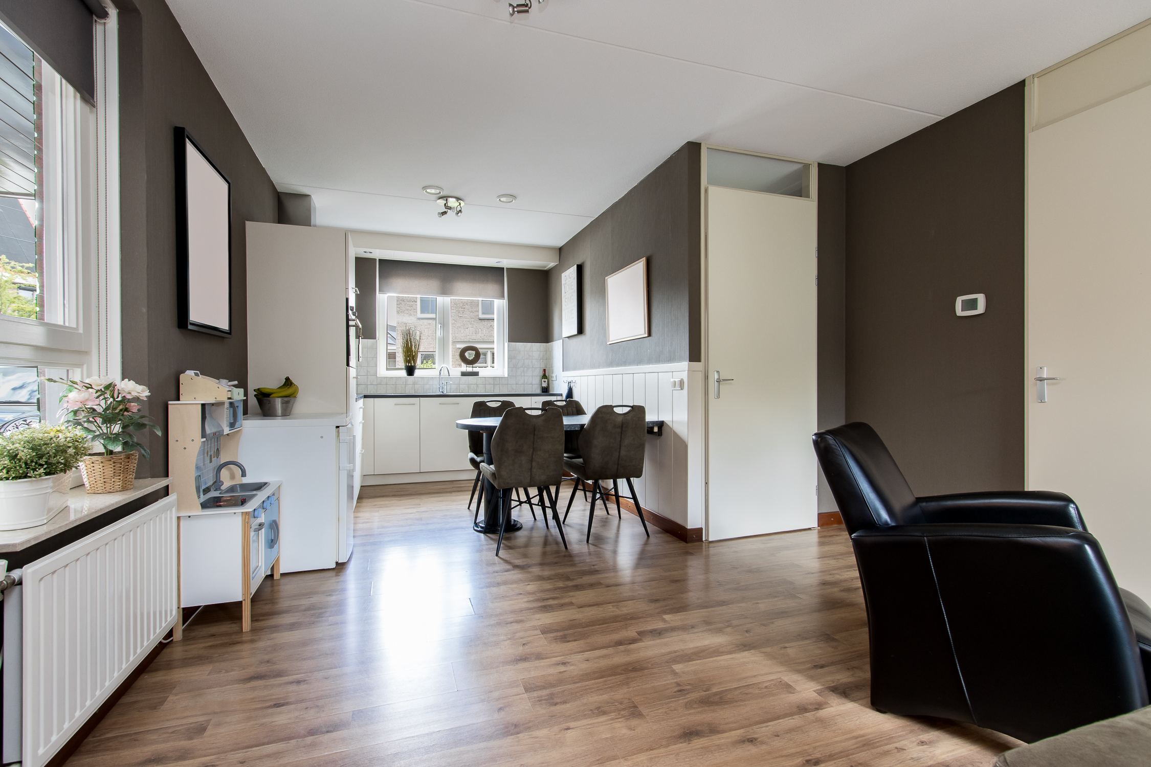 Indeling woning: de entree geeft toegang tot de hal met garderobe, meterkast, toiletruimte en trapopgang naar de eerste verdieping. Vanuit de hal stap je de ruime, tuingerichte woonkamer binnen met aan de voorzijde de open keuken in hoekopstelling. De woonkamer is voorzien van een praktische trapkast en een handige berging aan de achterzijde met toegang naar de achtertuin.