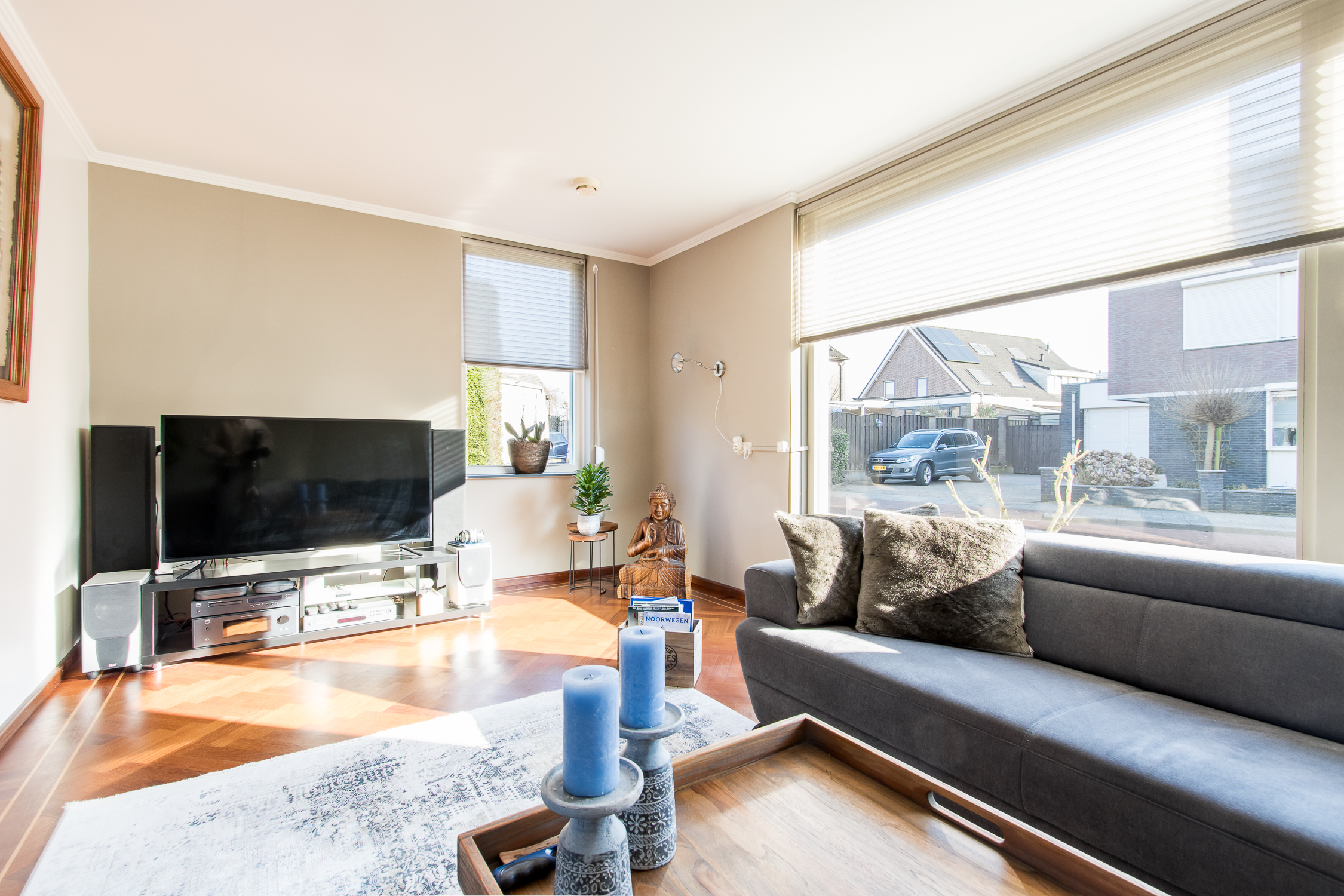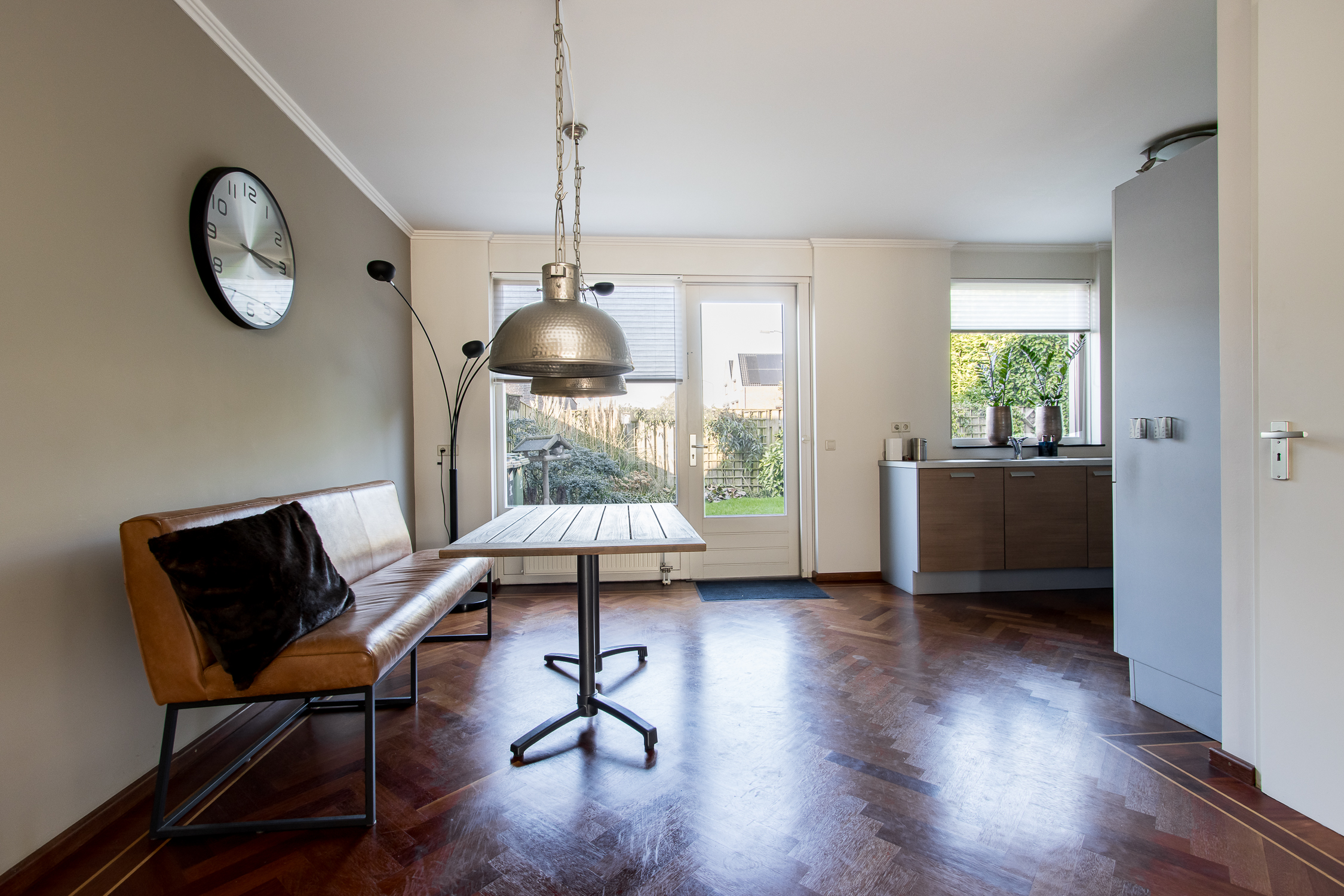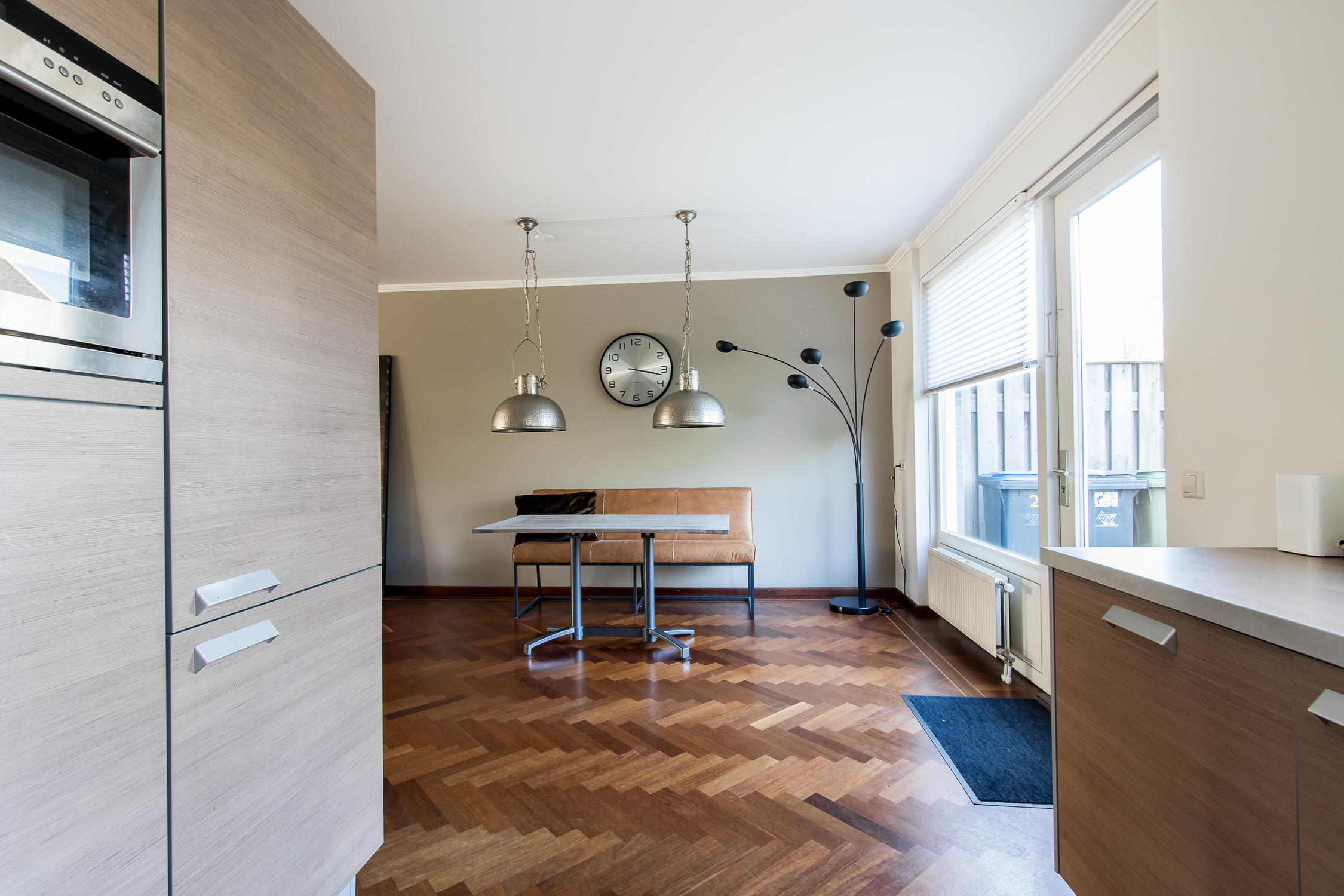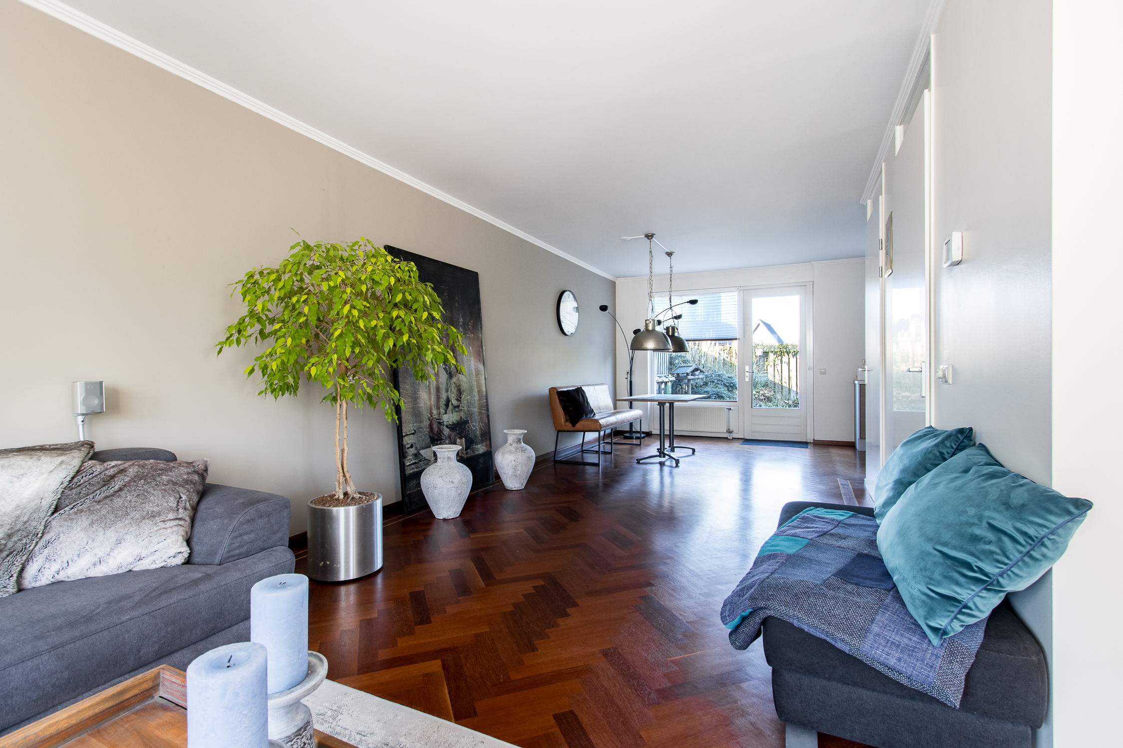 Indeling woning: via de entree kom je in een ruime hal met garderobe, meterkast, toiletruimte en een trapopgang naar de eerste verdieping. Vanuit de hal stap je de lichte en royale woonkamer binnen. De woonkamer bevindt zich aan de voorzijde, terwijl de moderne U-vormige keuken met diverse inbouwapparatuur aan de achterzijde is gesitueerd. Een loopdeur biedt directe toegang tot het terras en de achtertuin.