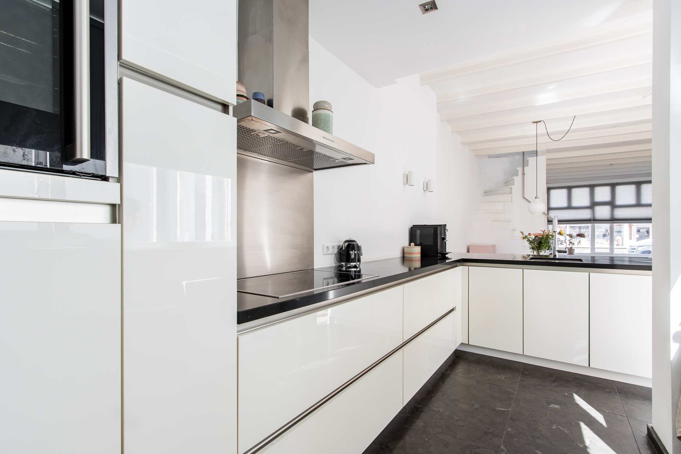 De woning verrast direct bij binnenkomst met haar warme uitstraling en authentieke charme. In de woonkamer trekt de moderne schouw met houtgestookte haard de aandacht – een sfeervol middelpunt waar oud en nieuw elkaar moeiteloos versterken. De keuken combineert hoogwaardige materialen met een tijdloze uitstraling en vormt een elegant verlengstuk van de leefruimte. Op de verdieping bevindt zich een eigentijdse badkamer en zijn er drie slaapkamers, stuk voor stuk sfeervol en licht. Bovenop dit alles biedt de woning ook nog een zonnig dakterras: een uniek stukje buitenruimte midden in de stad. En de besloten binnenplaats op de begane grond is de perfecte plek voor een kop koffie in de ochtendzon.