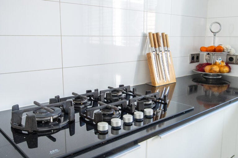 Aan de voorzijde bevindt zich de open keuken, uitgevoerd met diverse inbouwapparatuur, waaronder een gasfornuis met wokbrander, afzuigkap, combioven, koelkast en vaatwasser. Aansluitend ligt de stenen berging, zowel binnendoor als van buitenaf bereikbaar.