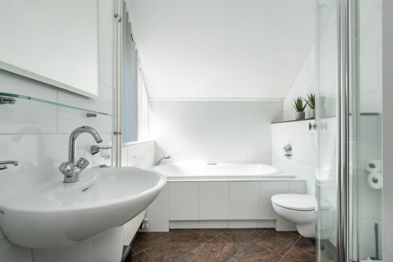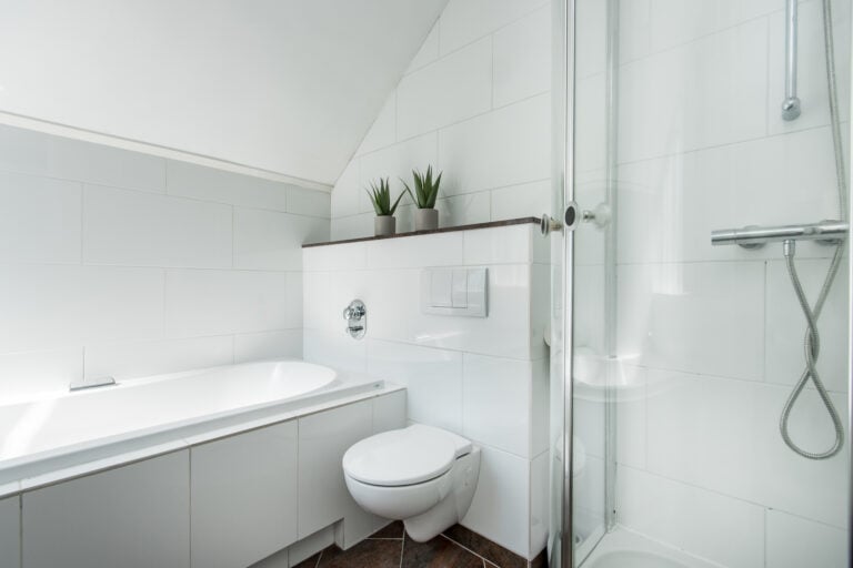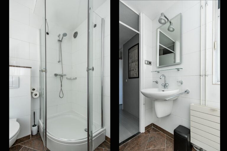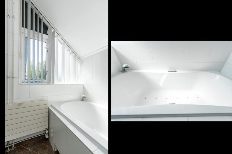 Op de verdiepingen beschikt de woning over vier slaapkamers, waardoor er ruimte genoeg is voor een gezin, thuiswerken of hobby’s. De badkamer is modern uitgevoerd en voorzien van een ligbad met whirlpoolfunctie, douchecabine, wastafel en toilet.