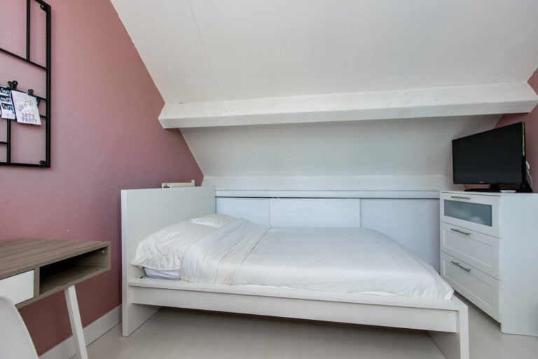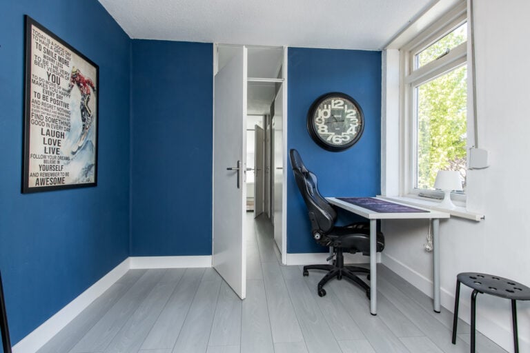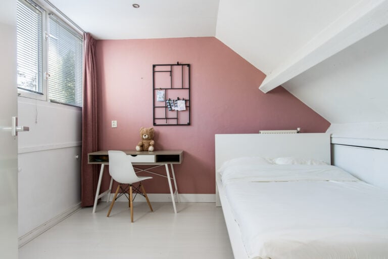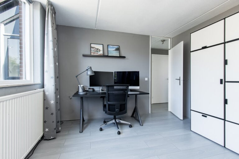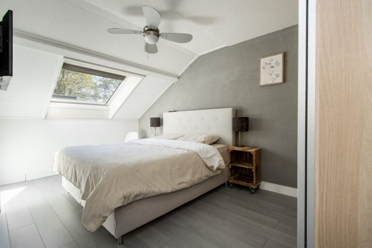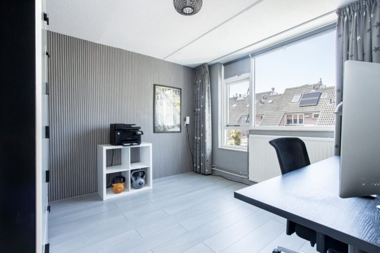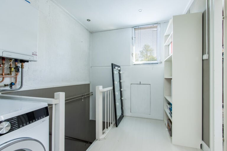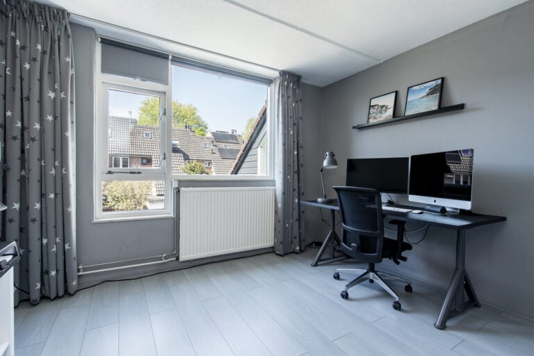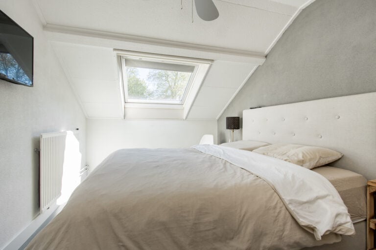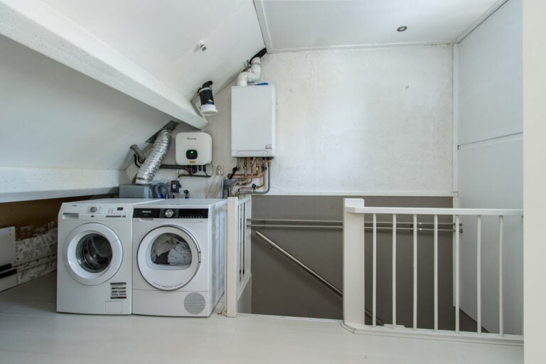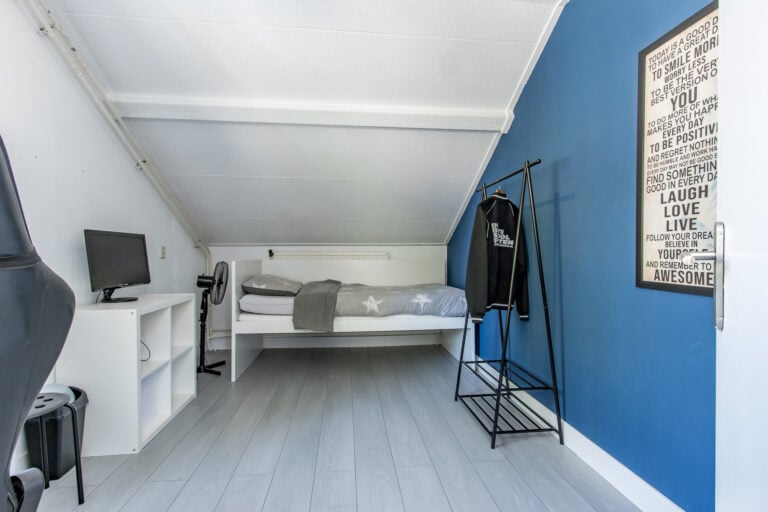 Tweede verdieping: de tweede verdieping biedt een ruime voorzolder met vaste kast, waar de cv-installatie en witgoedaansluitingen zijn geplaatst. Aansluitend bevindt zich de vierde slaapkamer, waarbij de dakkapel zorgt voor extra licht en ruimte.