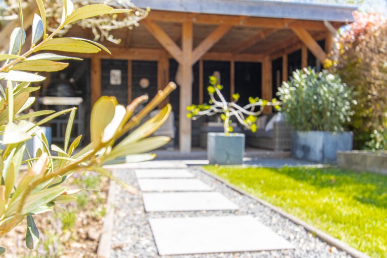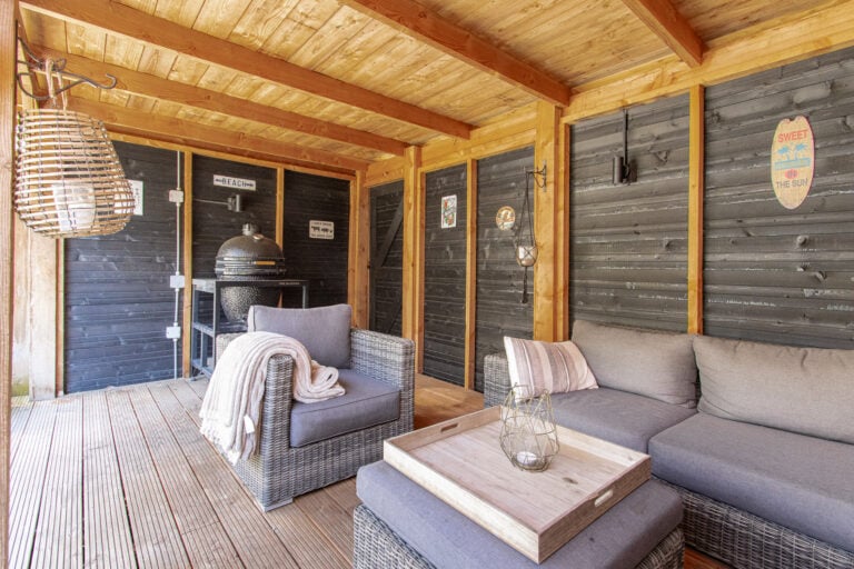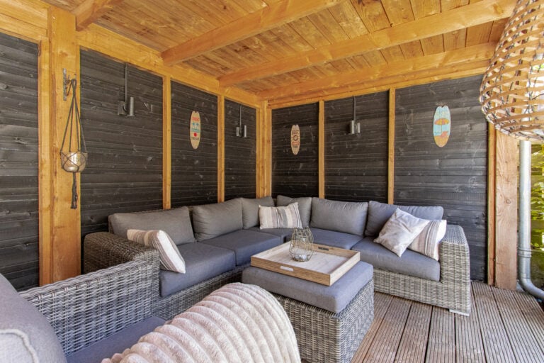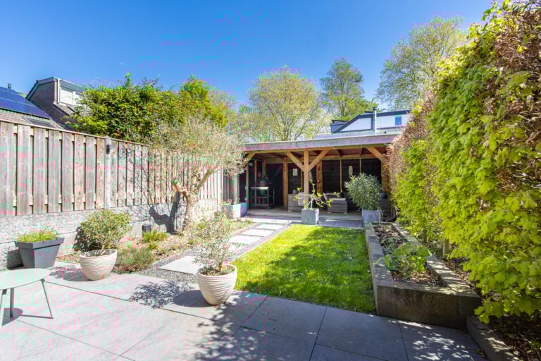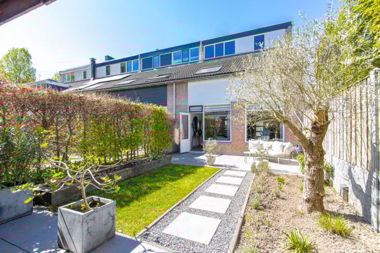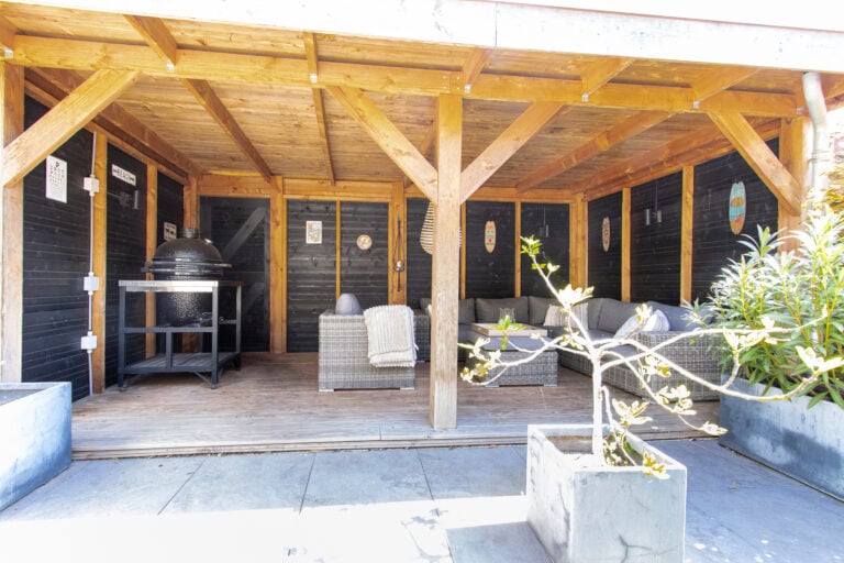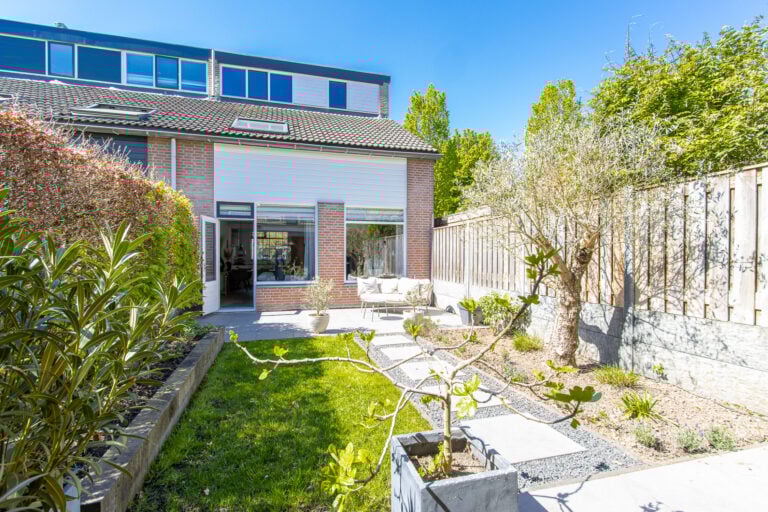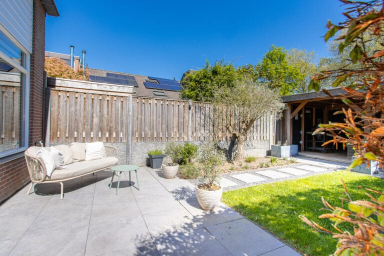 De woning heeft een onderhoudsvriendelijke voortuin en een stenen berging aan de voorzijde. De achtertuin is verzorgd aangelegd en gelegen op het noordoosten, waar je in de ochtend geniet van de eerste zonnestralen. Achterin de tuin staat een vrijstaande houten overkapping: een sfeervolle, beschutte plek om het hele seizoen comfortabel buiten te zitten en te ontspannen.