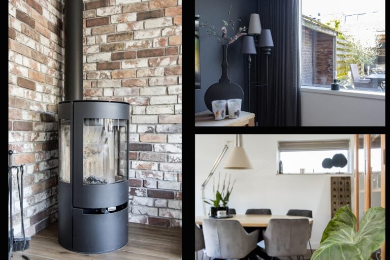 • lichte woonkamer met houtkachel;