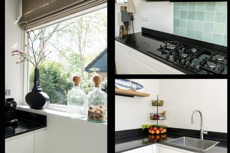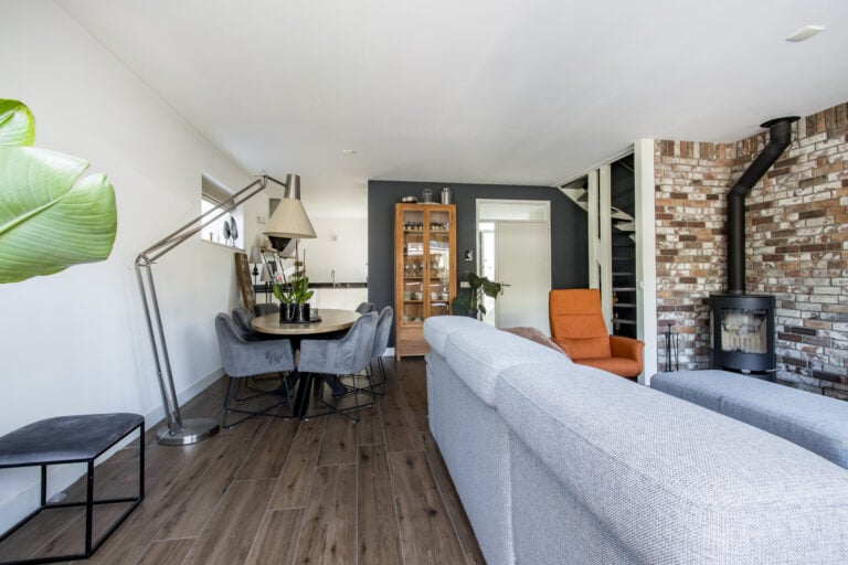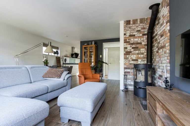 De lichte living vormt het hart van de woning, met een warme houtkachel als gezellige blikvanger. Grote ramen zorgen voor een fijne verbinding met buiten en laten het daglicht rijkelijk binnenstromen. Aan de voorzijde bevindt zich de moderne halfopen keuken, strak vormgegeven en van alle gemakken voorzien – een heerlijke plek om te koken én te leven.