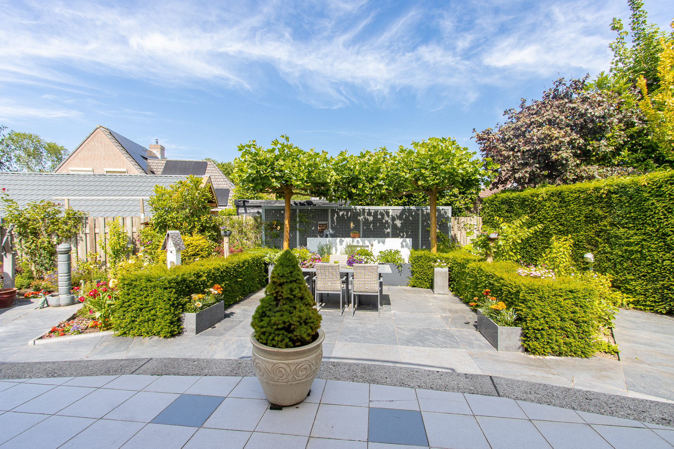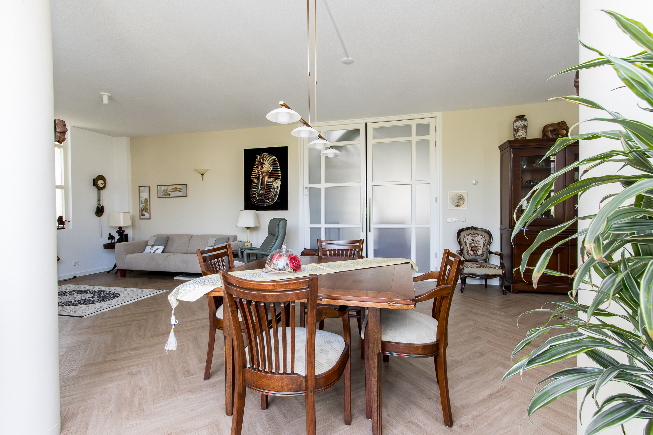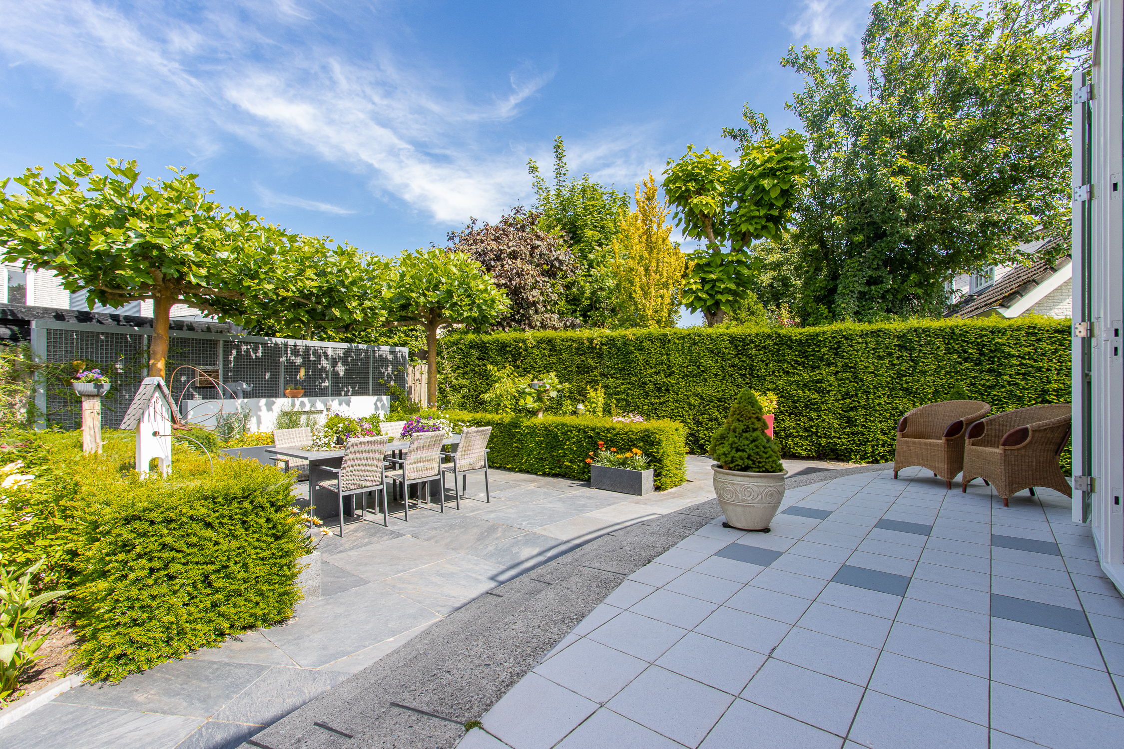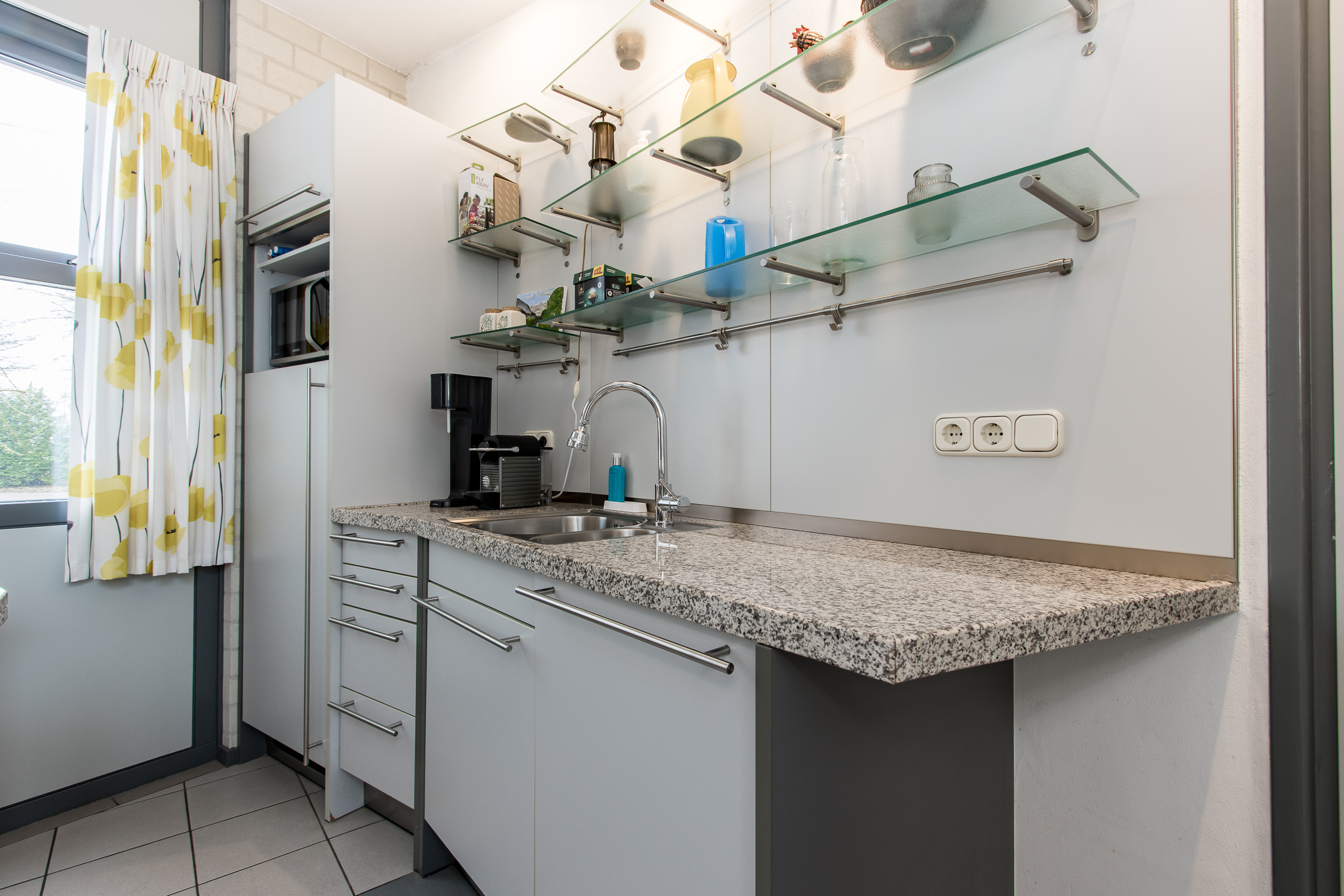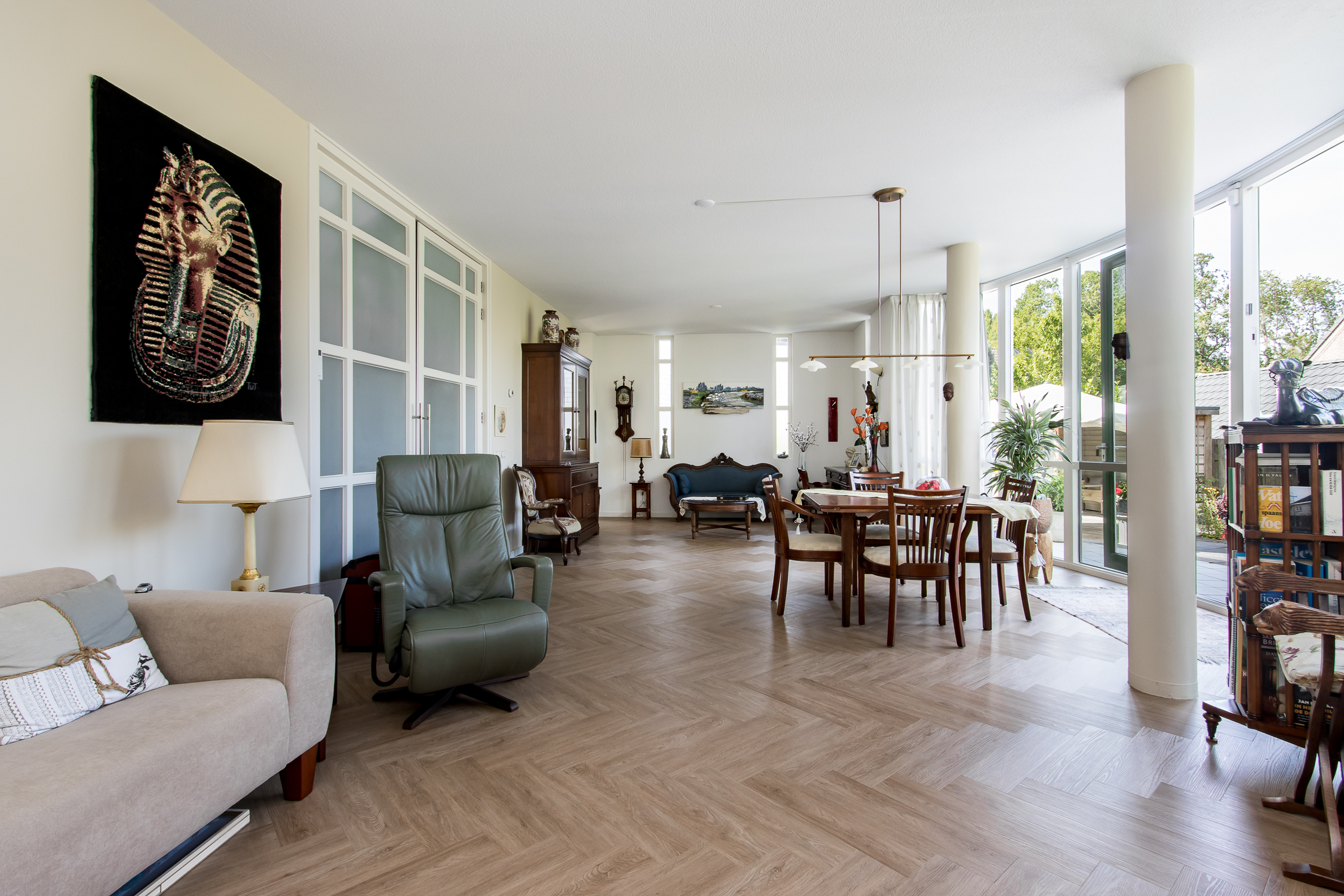 De lichte woonkamer is gelegen aan de achterzijde en biedt een prachtig uitzicht op de fraai aangelegde achtertuin. De woonkamer beschikt over een airco tevens verwarmingsunit van 2023. In voor-en najaar kan hiermee de kamer verwarmd worden maar ook in de winter als bijverwarming voldoet deze unit. Uiteraard kan de kamer ook goed gekoeld worden. Vanuit de woonkamer komt u via de bijkeuken met een tweede elektrische kookplaat en vaatwasser in de compleet ingerichte woonkeuken met vrij uitzicht. De keuken in hoekopstelling is uitgerust met diverse inbouwapparatuur zoals een Bora inductiekookplaat met geïntegreerde afzuiging, (stoom)oven, koelkast, vaatwasser en Quooker.