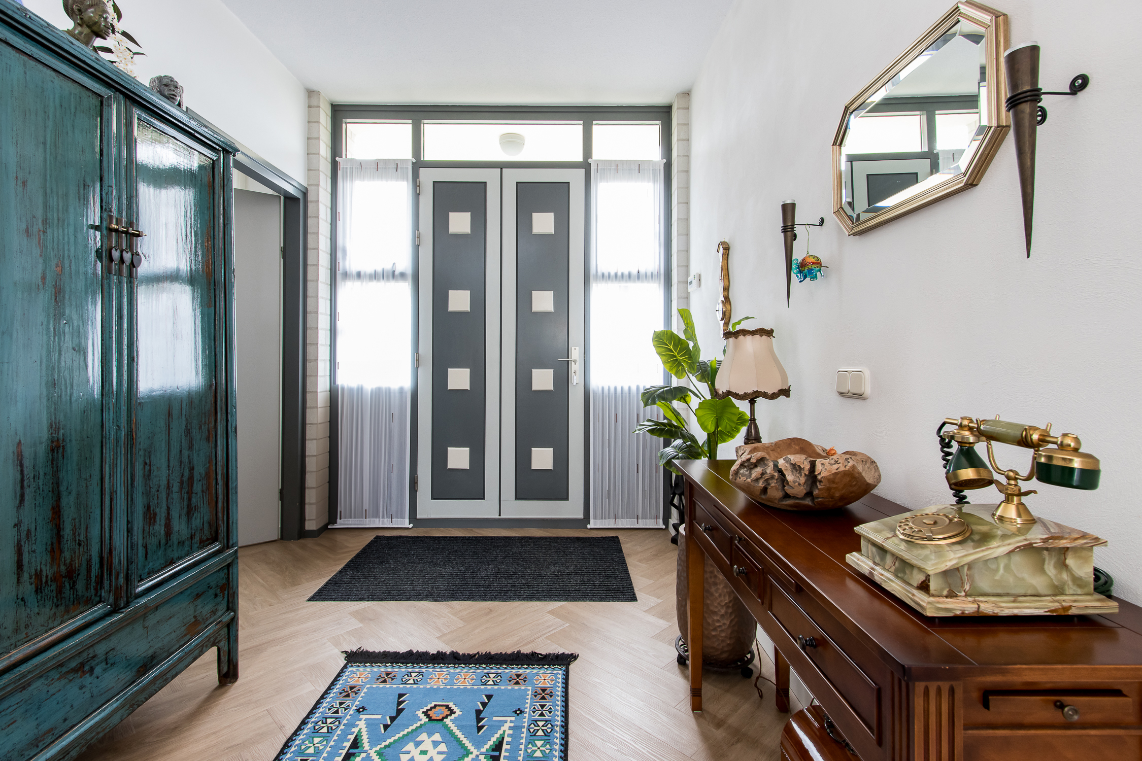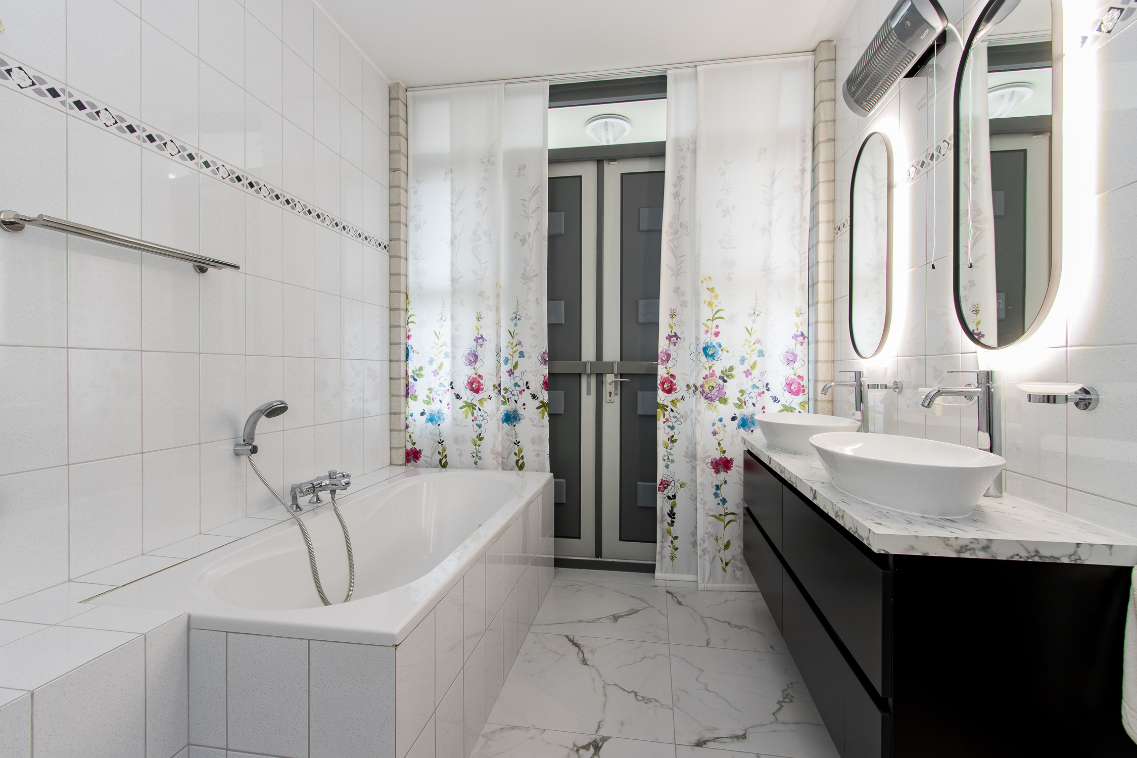 Indeling woning: via de overdekte entree komt u in de ruime, statige hal voorzien van een garderobe, meterkast, toiletruimte, trapopgang naar de eerste verdieping en keldertrap. Aan de voorzijde van de woning bevindt zich een royaal bemeten slaapkamer met een aangrenzende, fraai afgewerkte badkamer. Deze is uitgerust met een ligbad, douche en een stijlvol wastafelmeubel met dubbele waskom en LED-verlichte spiegels. Momenteel is de slaapkamer in gebruik als tv-kamer, maar deze multifunctionele ruimte biedt diverse mogelijkheden, waaronder wonen, werken of als gastenverblijf.