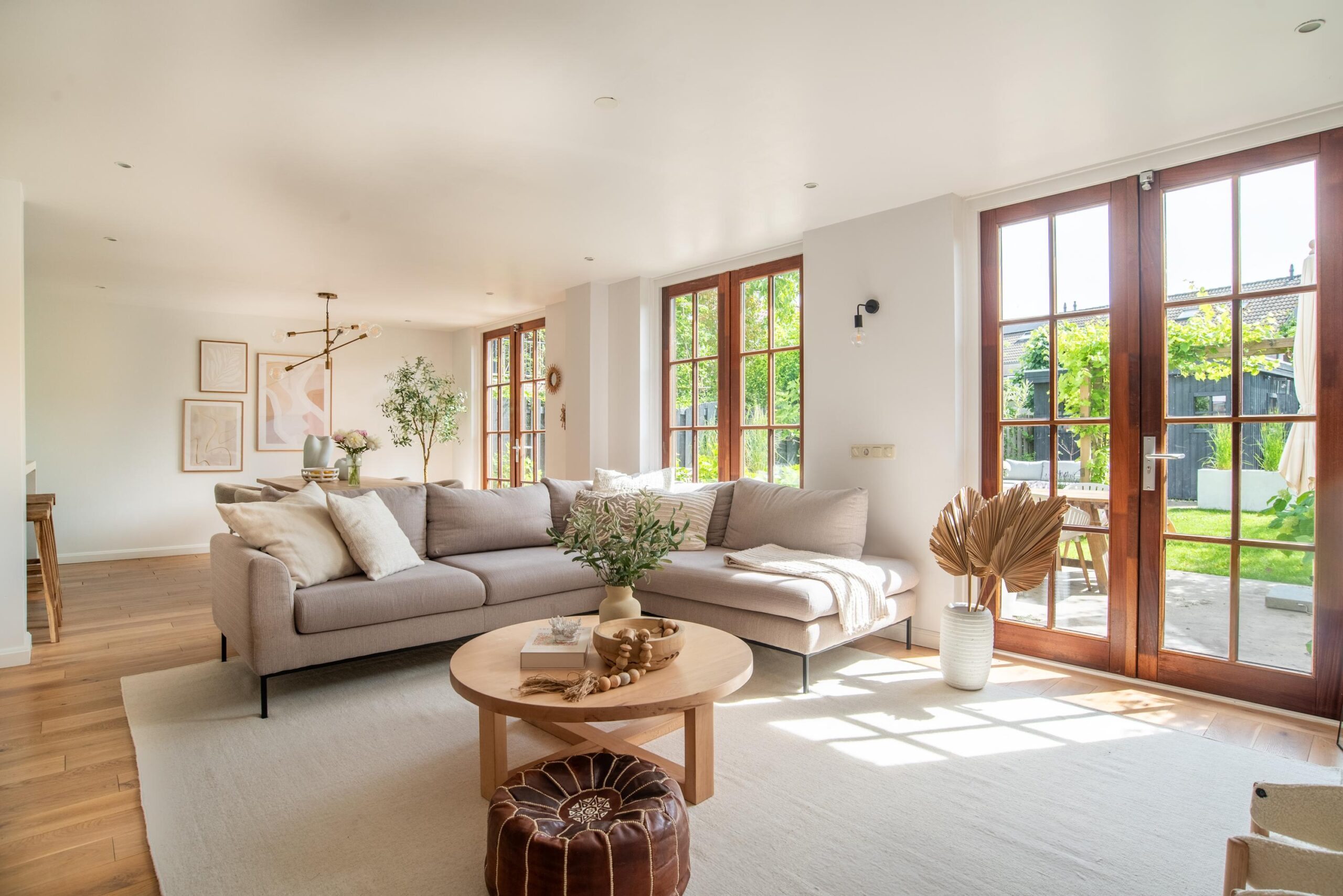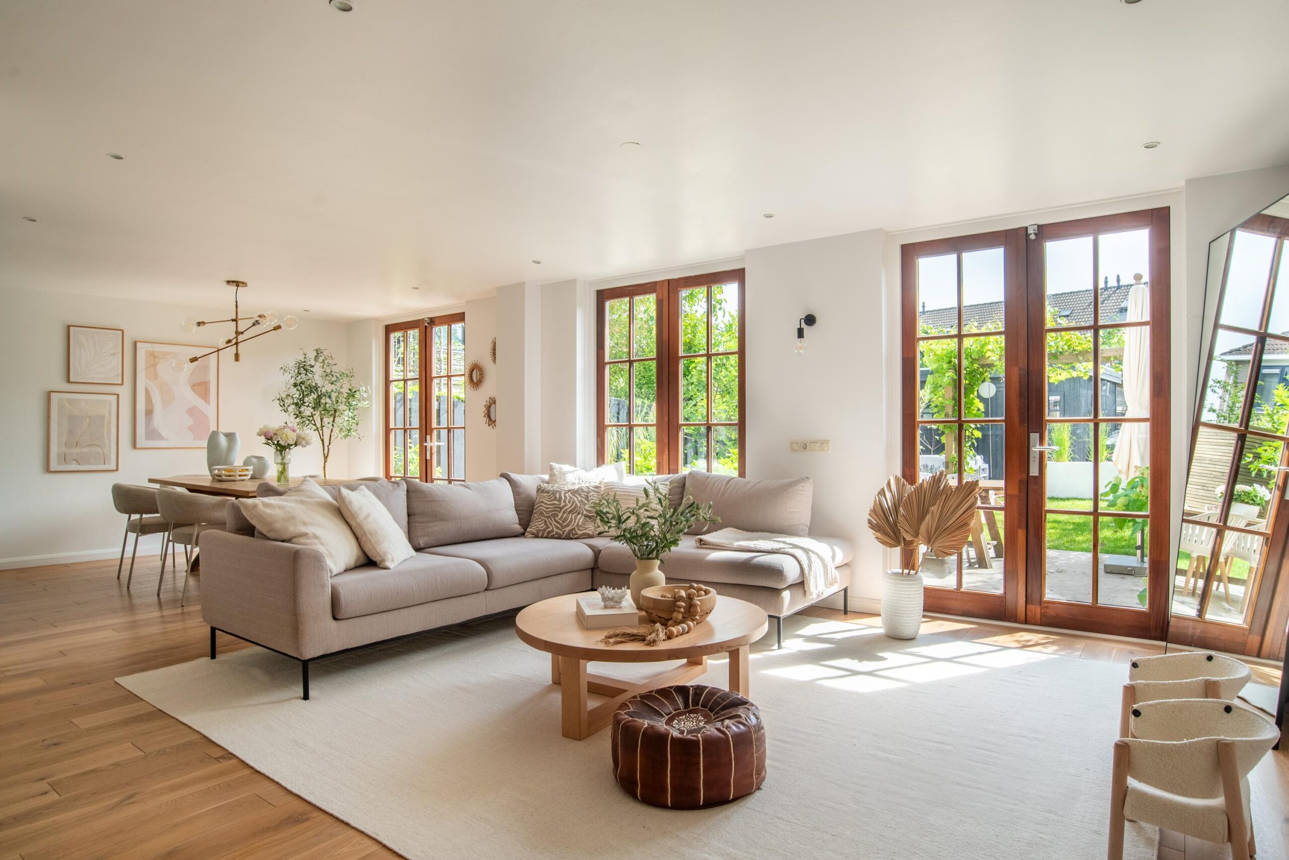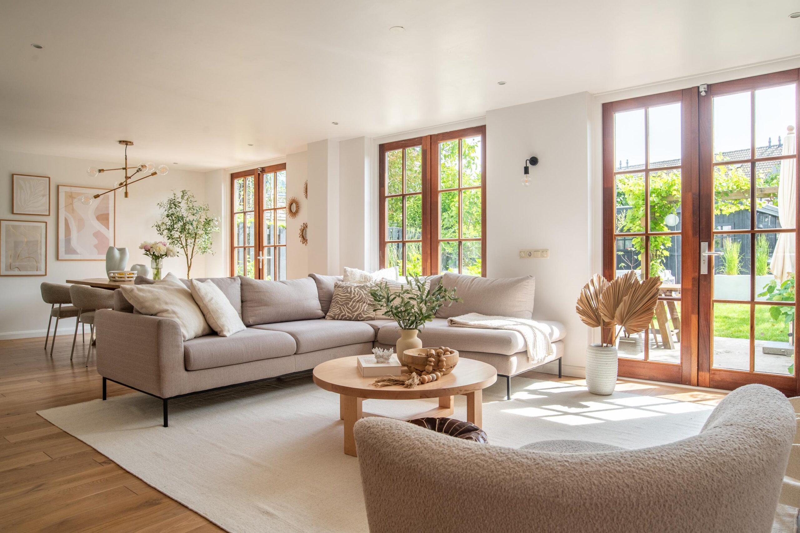• royale woonkamer met drie dubbele openslaande tuindeuren;