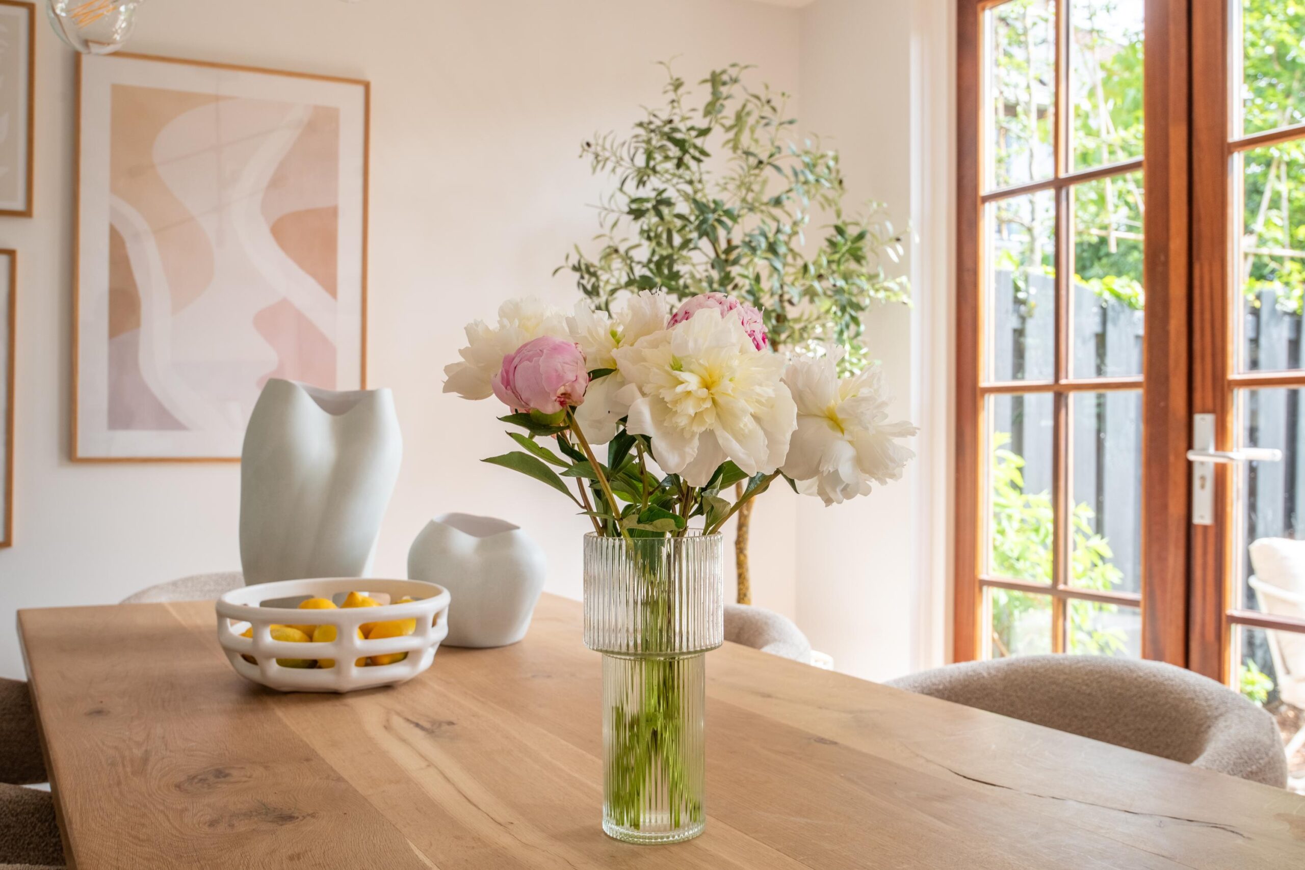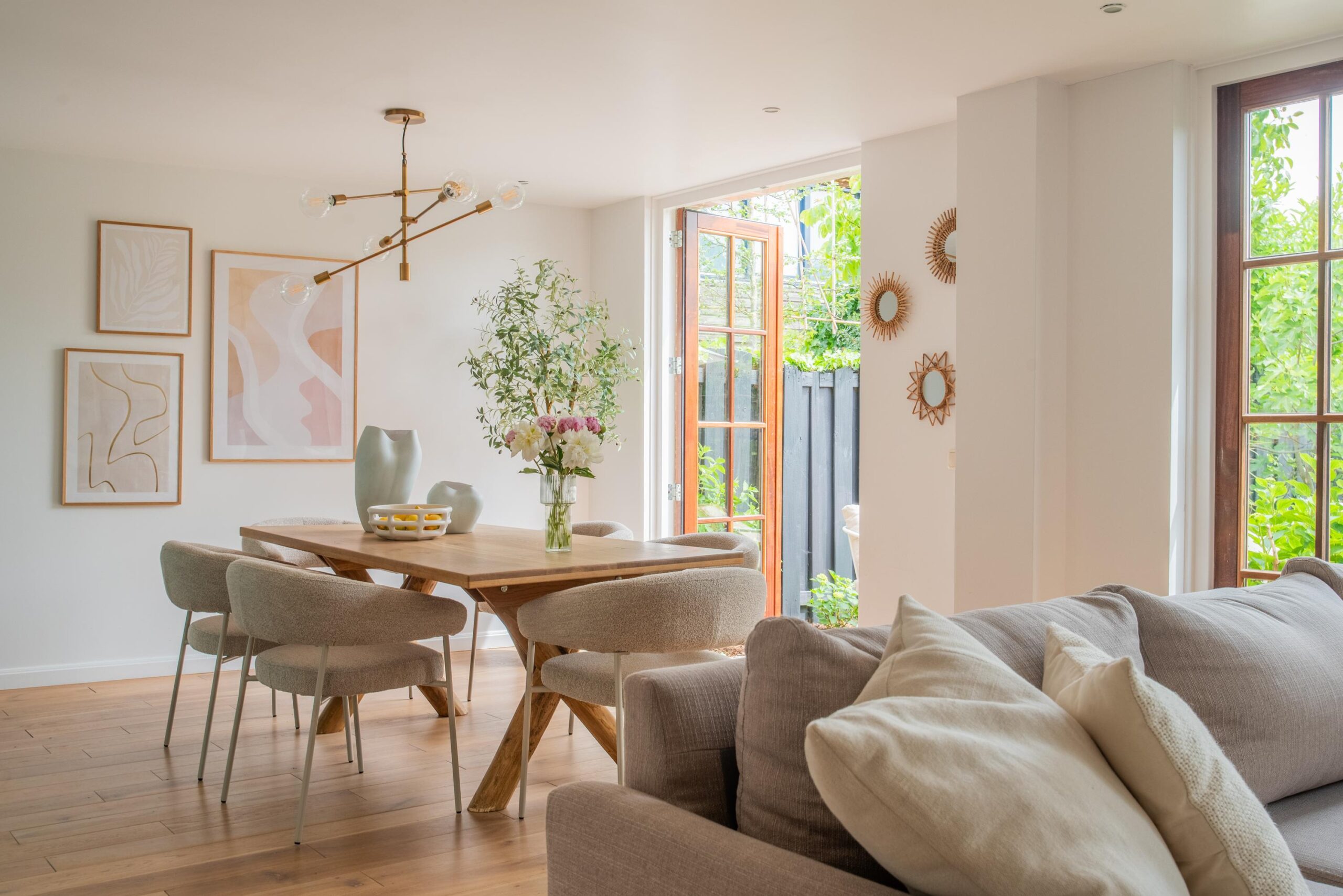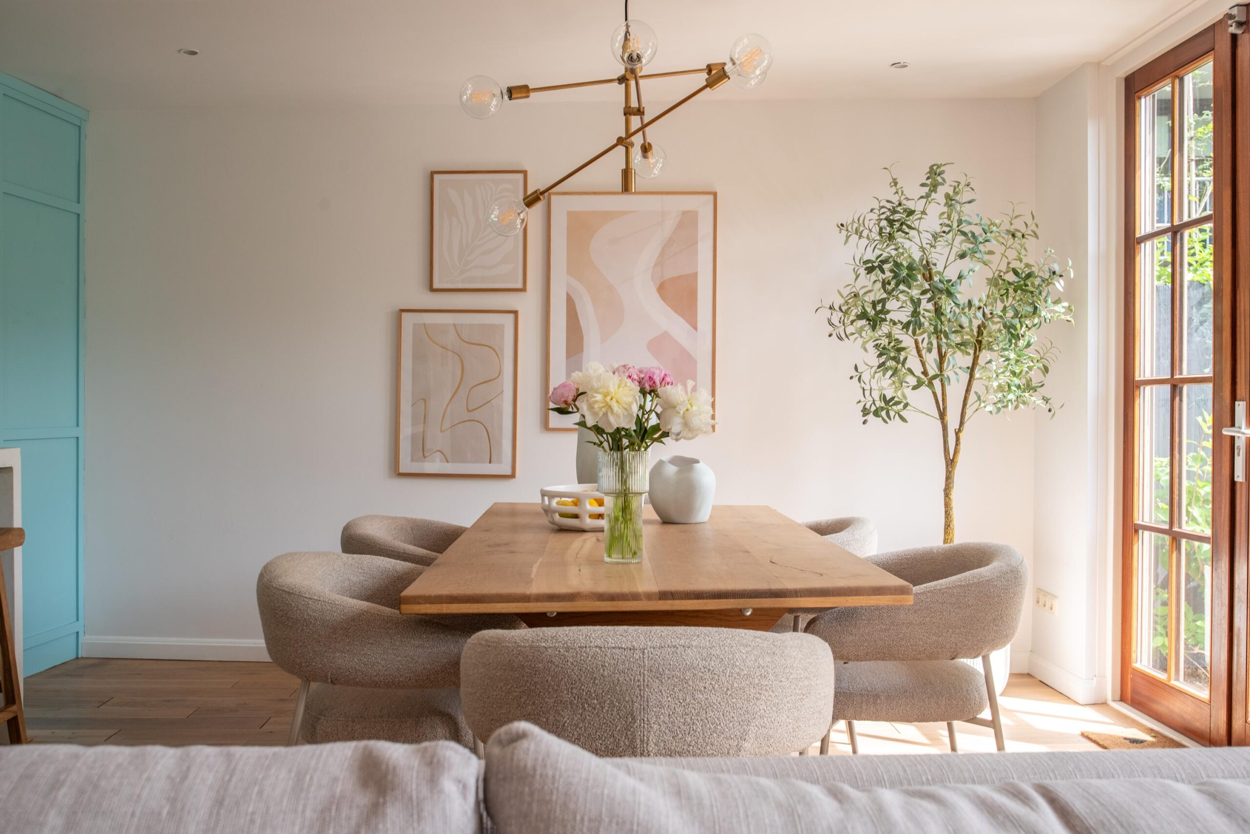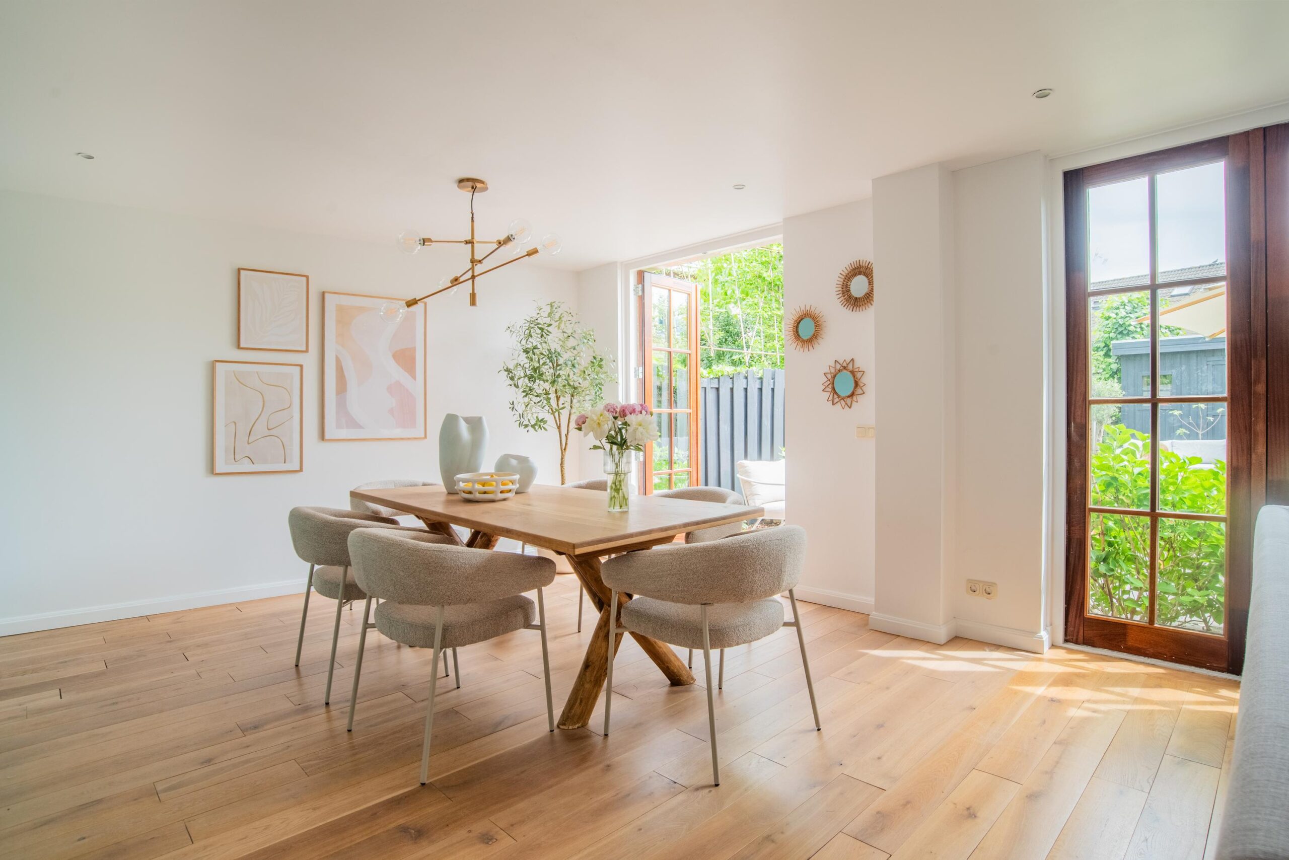 De woonkamer is royaal en baadt in het daglicht, mede dankzij de drie dubbele openslaande tuindeuren die de verzorgde achtertuin op een natuurlijke manier bij de leefruimte betrekken. De open keuken en ruime indeling maken dit huis uitermate geschikt voor gezinnen of mensen die graag de ruimte hebben. Met maar liefst vijf volwaardige slaapkamers is er plek genoeg voor werken, slapen en ontspannen. Buiten is het ook goed toeven: de woning beschikt over een eigen oprit en een zonnige, fraai aangelegde achtertuin met volop privacy.