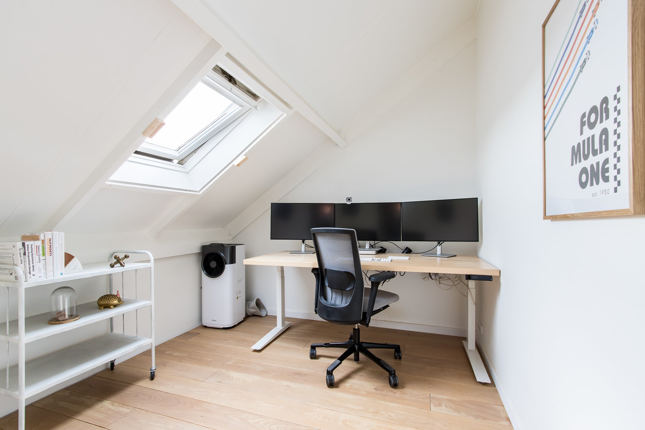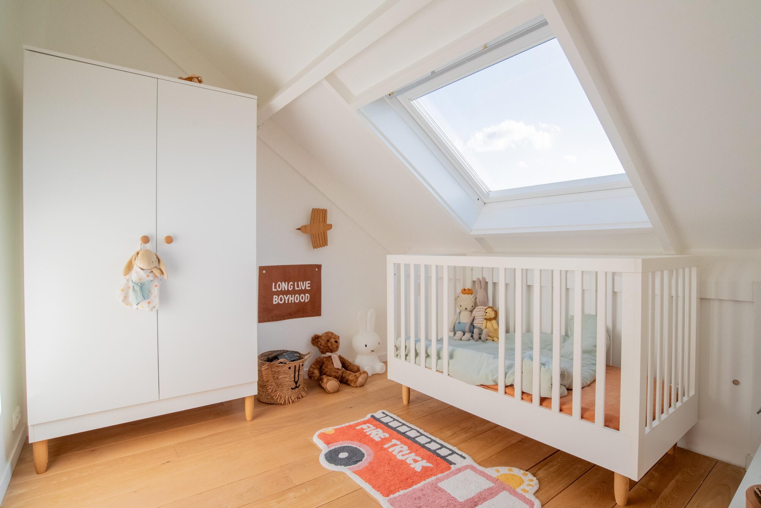 Tweede verdieping: via een vaste trap kom je op de tweede verdieping. Hier bevinden zich nog eens twee slaapkamers, ideaal als extra slaap-, werk- of hobbyruimte. Op de overloop is de opstelplaats voor de cv-installatie te vinden, evenals aansluitingen voor de wasmachine en droger. Ook is hier extra bergruimte beschikbaar achter de knieschotten.