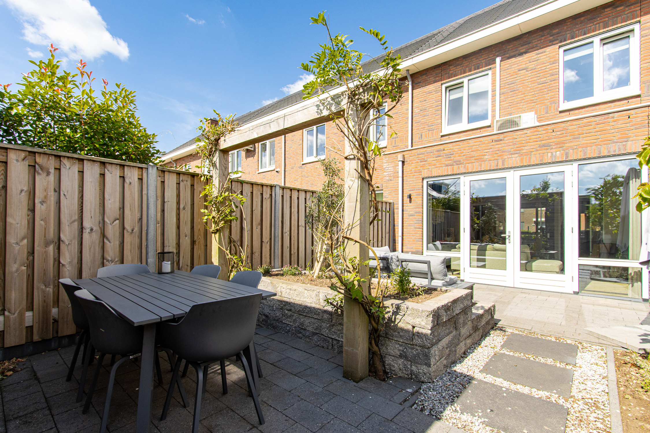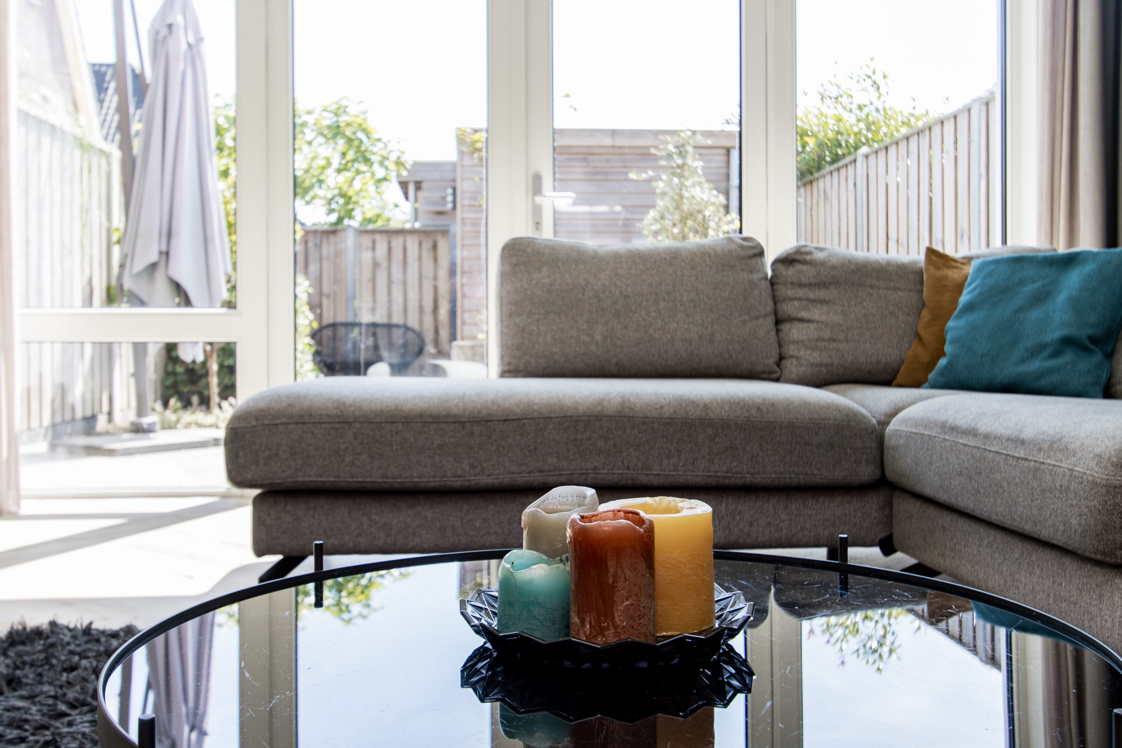 • een lichte, tuingerichte woonkamer met openslaande deuren naar buiten;