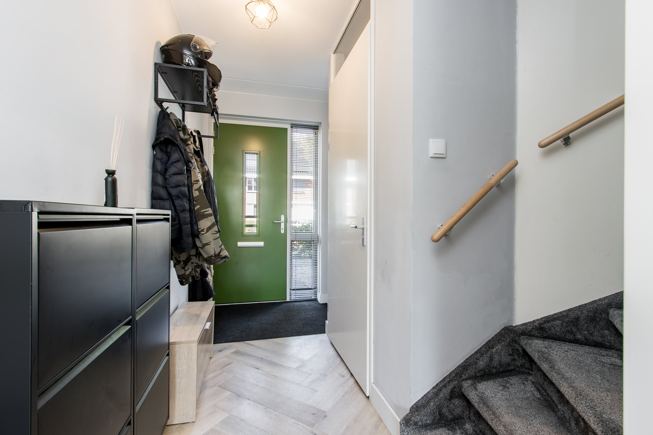 Indeling woonhuis: aan de voorzijde van de woning is de entree gesitueerd. In de hal bevindt zich de meterkast, toiletruimte en de trapopgang naar verdieping. De hal geeft toegang tot de tuingerichte woonkamer met open keuken. De moderne keuken is voorzien van diverse inbouwapparatuur waaronder een koelkast, inductie kookplaat, afzuigkap, combioven en vaatwasser. Openslaande deuren geven toegang tot de achtertuin.