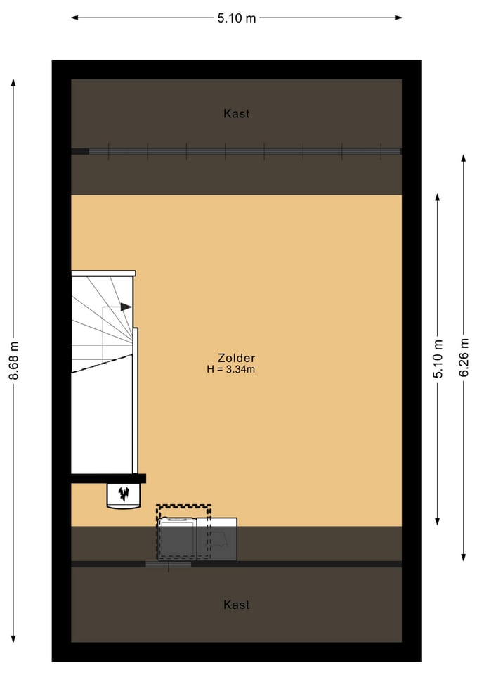 Tweede verdieping: via een vaste trap is de open zolder met witgoedaansluiting, WTW-unit en C.V.-installatie bereikbaar. Er is voldoende ruimte voor het creëren van een extra (slaap)kamer.