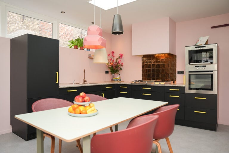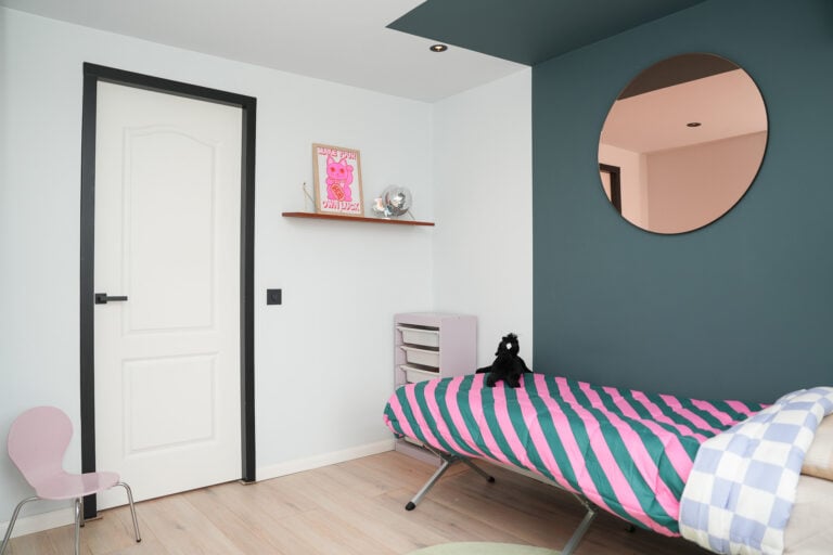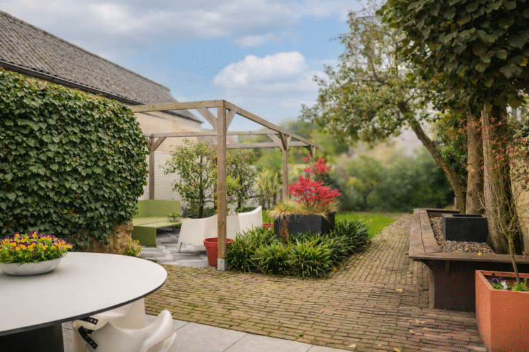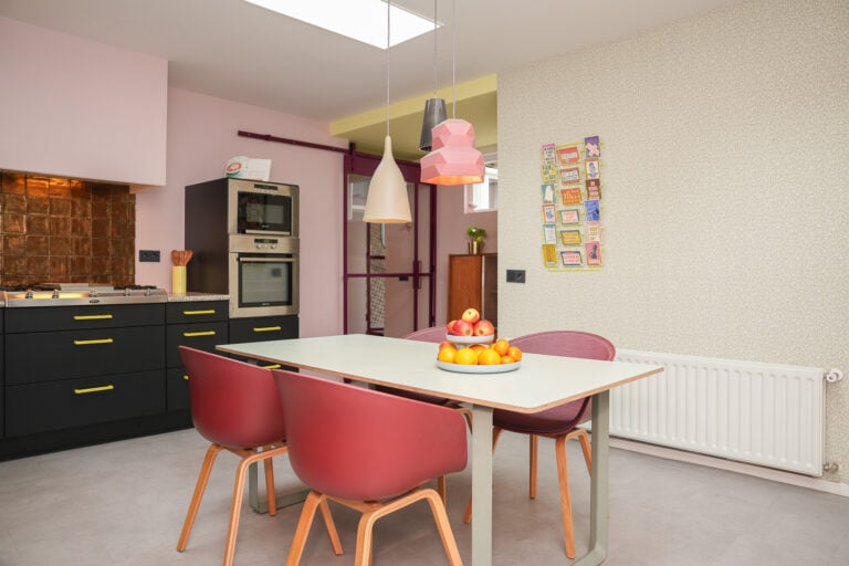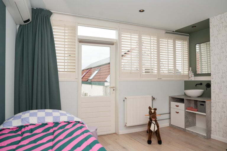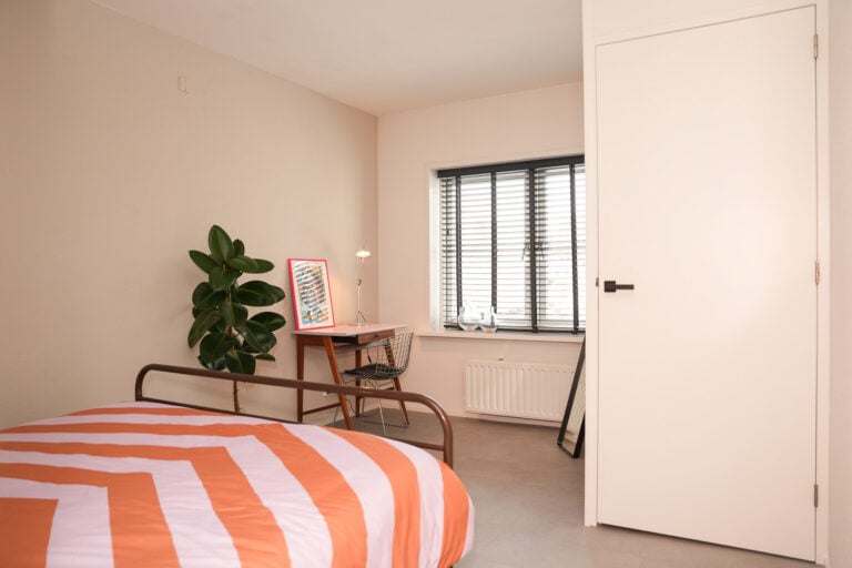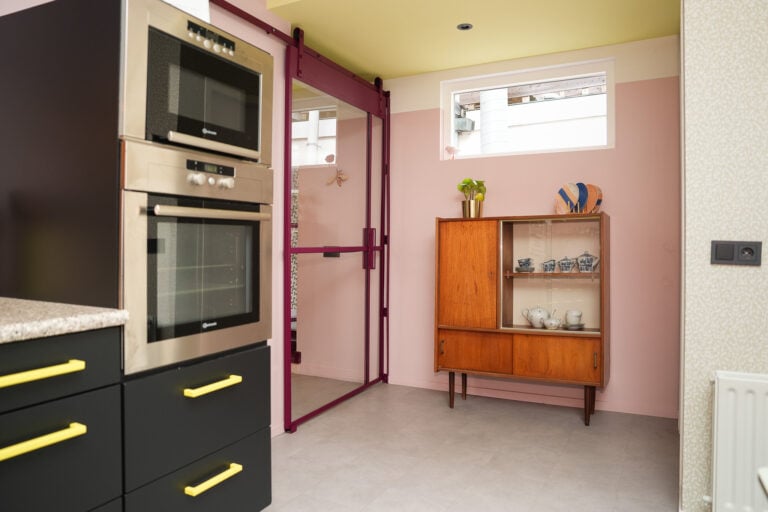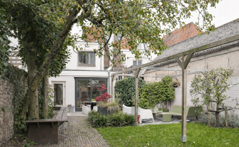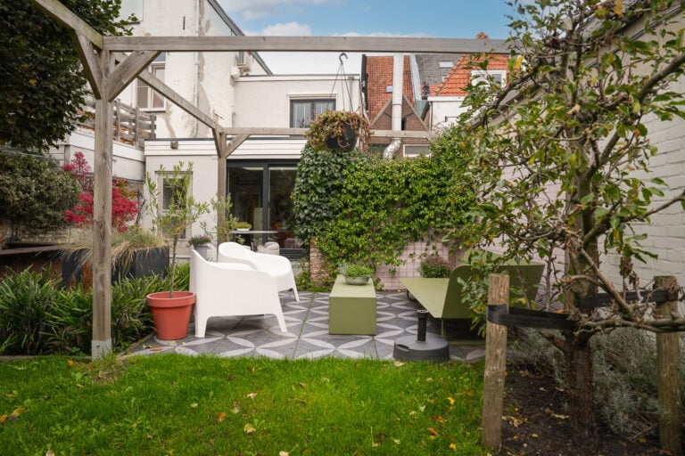 Een bijzonder element is de tuinkamer op de begane grond. Dankzij de grote schuifpui die uitkomt op de zonnige achtertuin, is dit een heerlijke plek om te ontspannen — maar ook perfect te gebruiken als atelier, speelkamer of inspirerende werkruimte.