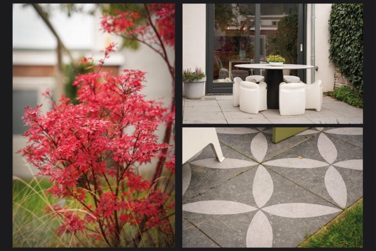 Tuin: de achtertuin ligt op het zuiden en is sfeervol ingericht met moderne terrastegels, siertegels en plantenborders.