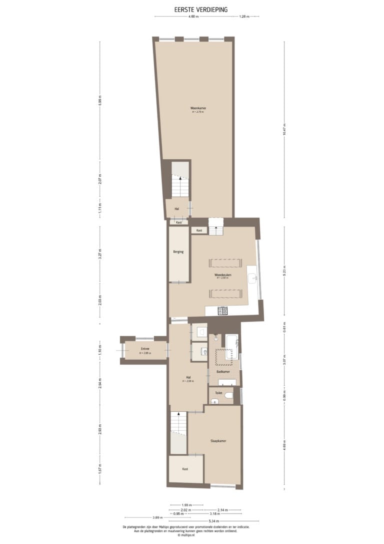 Indeling: via de gezamenlijke entree kom je binnen in een lange gang die toegang geeft tot de trap naar de eerste verdieping.