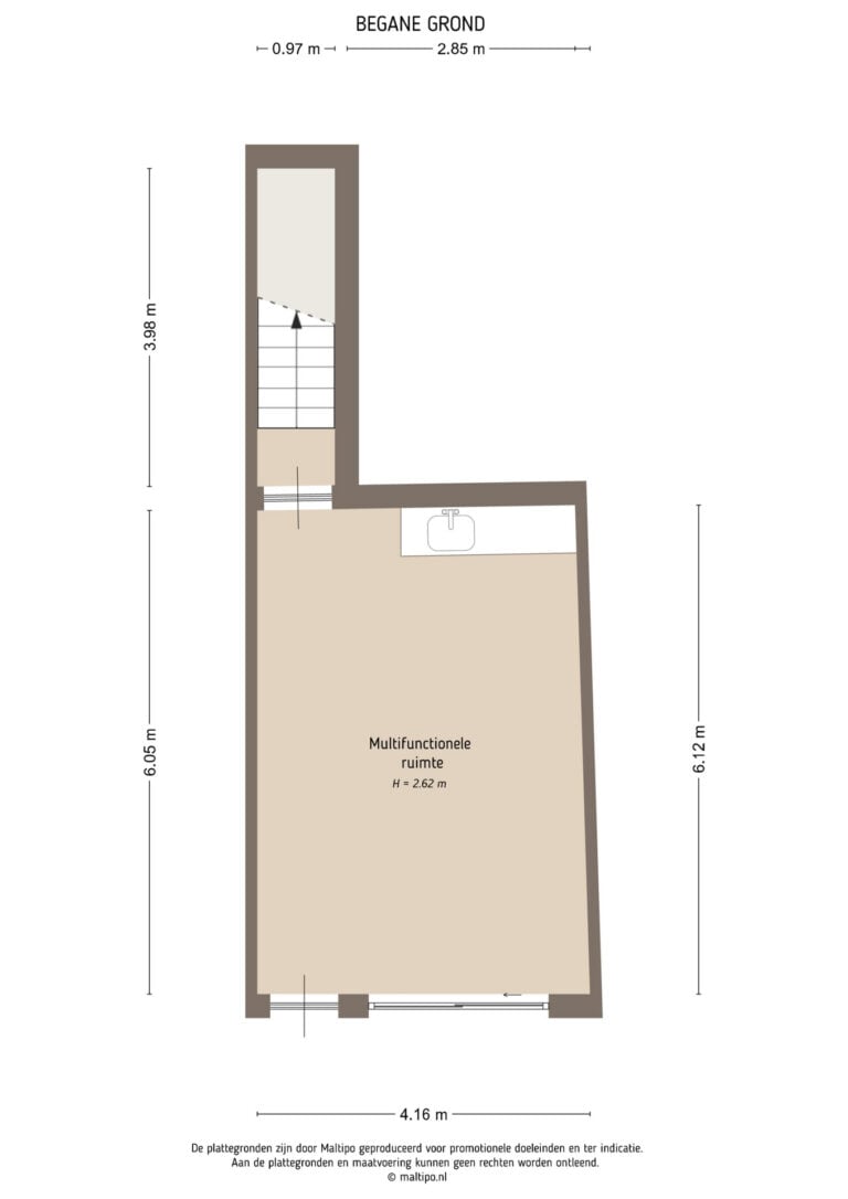Kadastrale grootte: de vermelde kadastrale afmetingen en oppervlakten zijn indicatief en ontleend aan de huidige kadastrale gegevens. Aan deze gegevens kunnen geen rechten worden ontleend. Na de voorgenomen splitsing zal het perceel kadastraal worden uitgemeten door het Kadaster, waarna de definitieve kadastrale grootte en begrenzing worden vastgesteld.