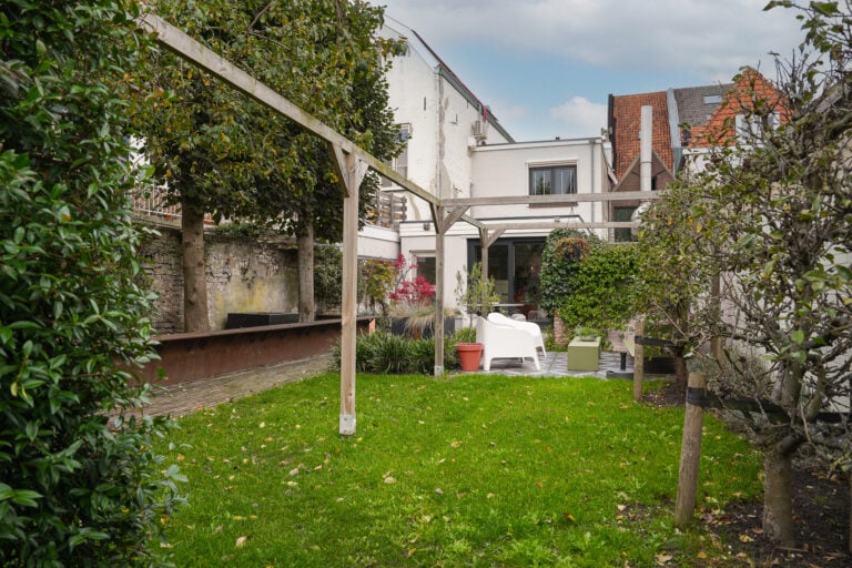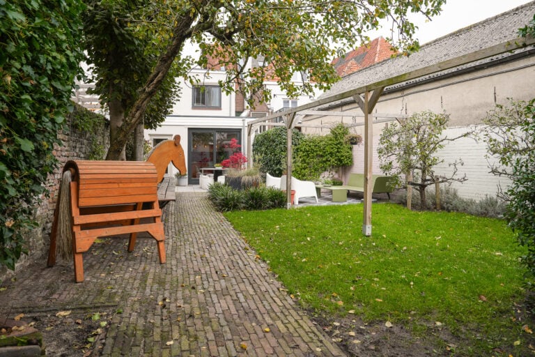 Een bijzonder element is de tuinkamer op de begane grond. Dankzij de grote schuifpui die uitkomt op de zonnige achtertuin, is dit een heerlijke plek om te ontspannen — maar ook perfect te gebruiken als atelier, speelkamer of inspirerende werkruimte. De tuin zelf is een groene oase van rust, opvallend royaal voor het centrum en gunstig gelegen op het zuiden. Via de Minnebroederstraat zijn de tuin, garage en parkeerplaatsen bereikbaar. De garage biedt plaats aan twee auto’s, met daarnaast nog een extra parkeerplek geschikt voor een kleine auto.