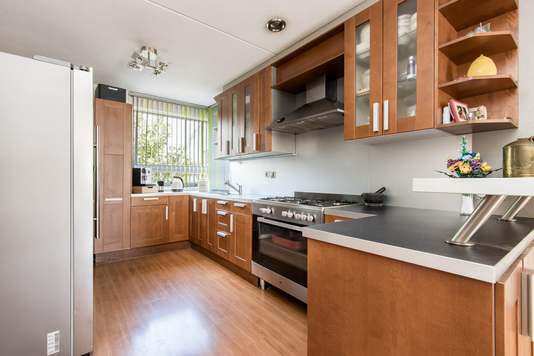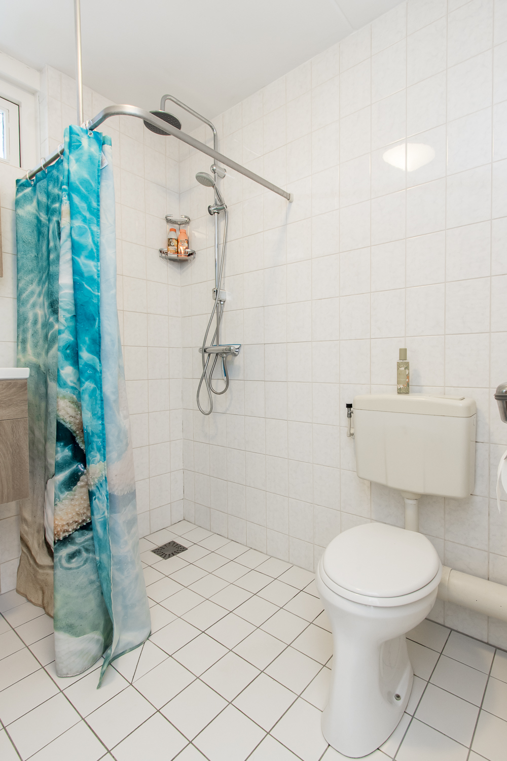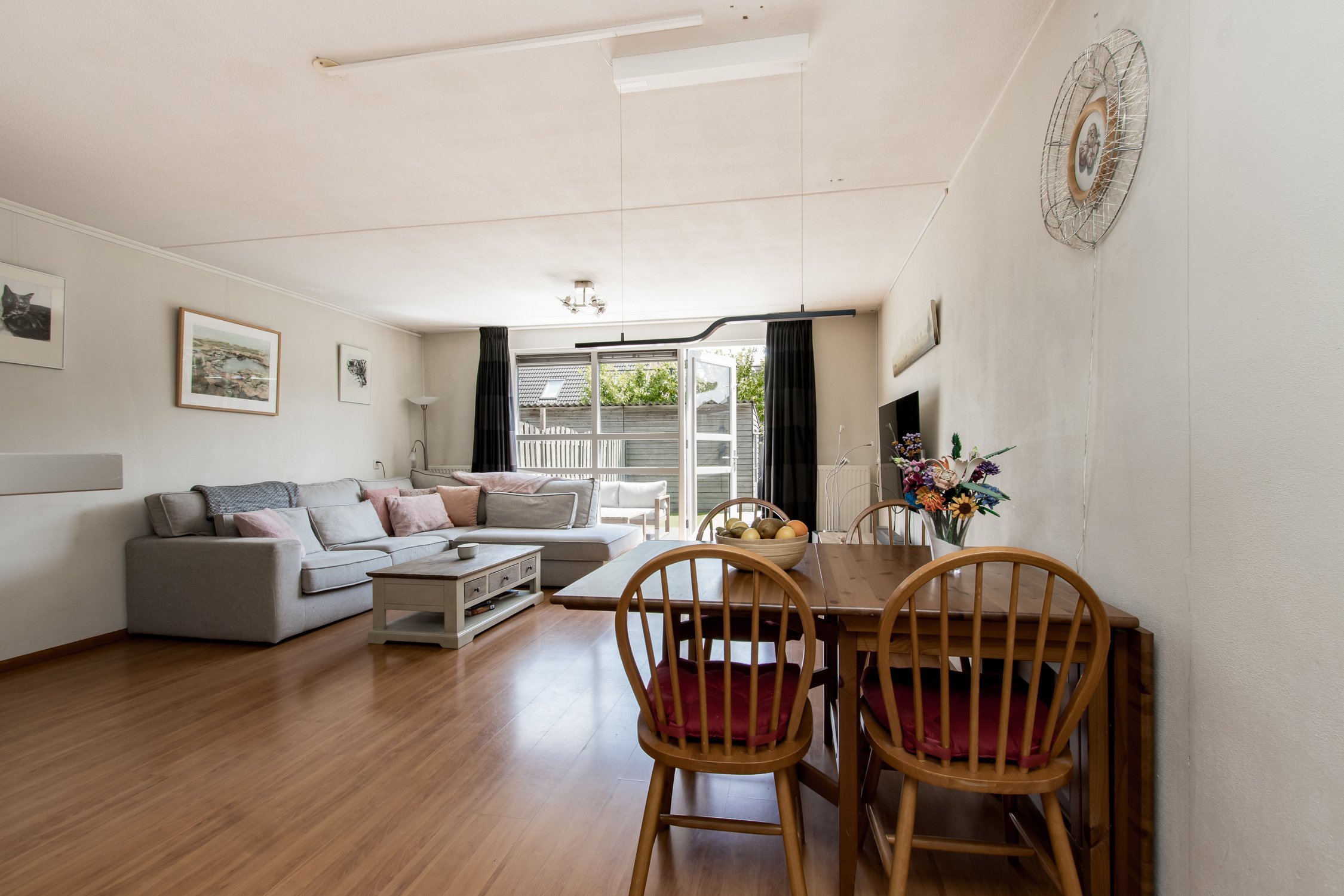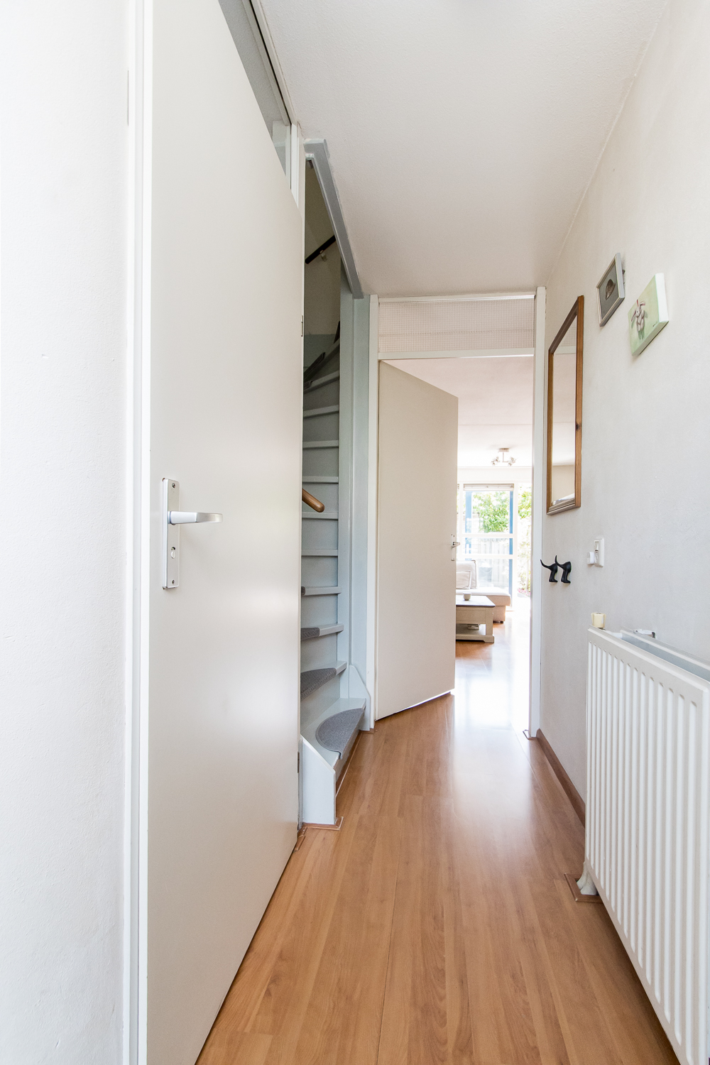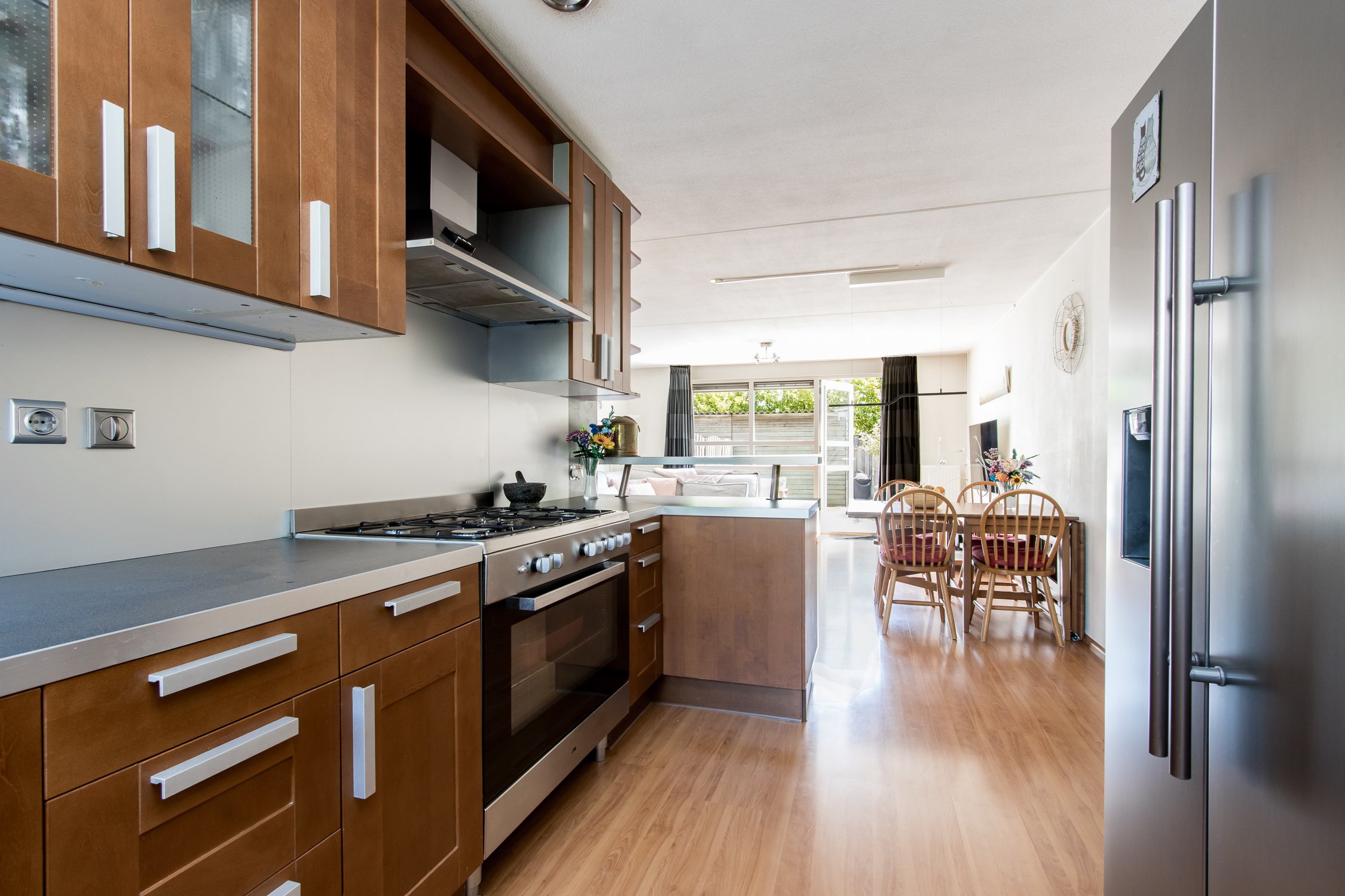 Indeling: aan de voorzijde bevindt zich de entree met meterkast, toiletruimte en trapopgang naar de eerste verdieping. Via de hal bereikt stap je de tuingerichte woonkamer binnen met aan de voorzijde is de open keuken voorzien van diverse inbouwapparatuur zoals; een 4-pits gasfornuis met wokbrander, afzuigkap, oven, koelkast met vriezer en vaatwasser.