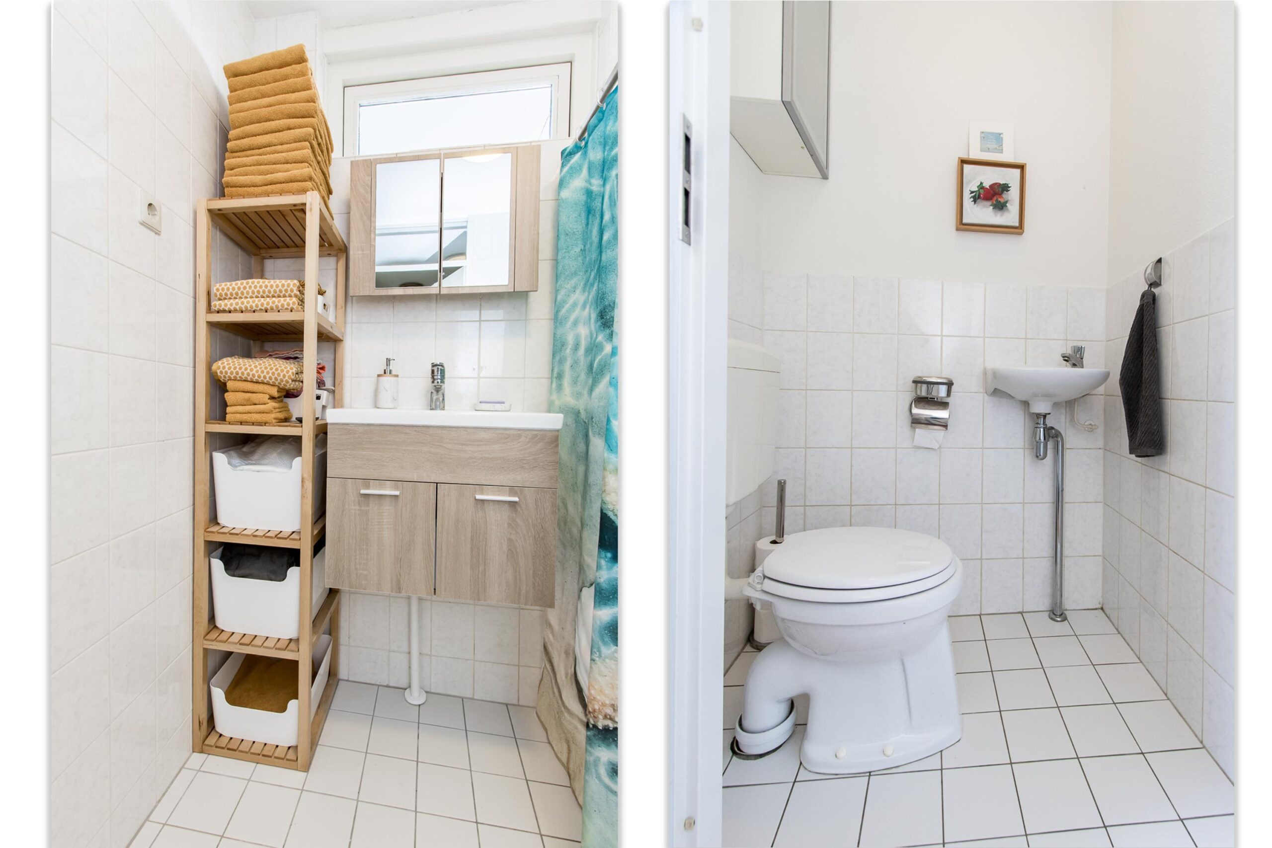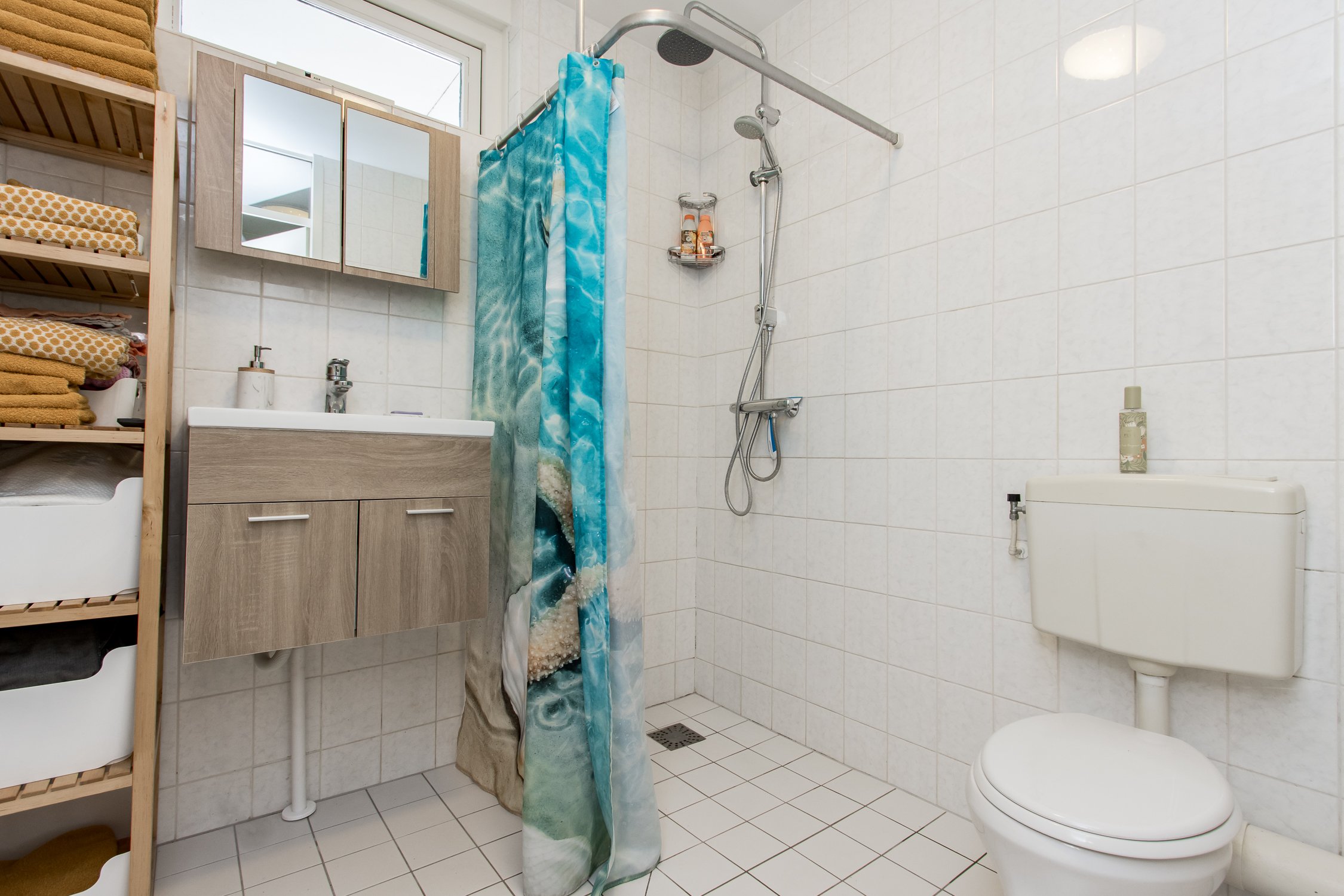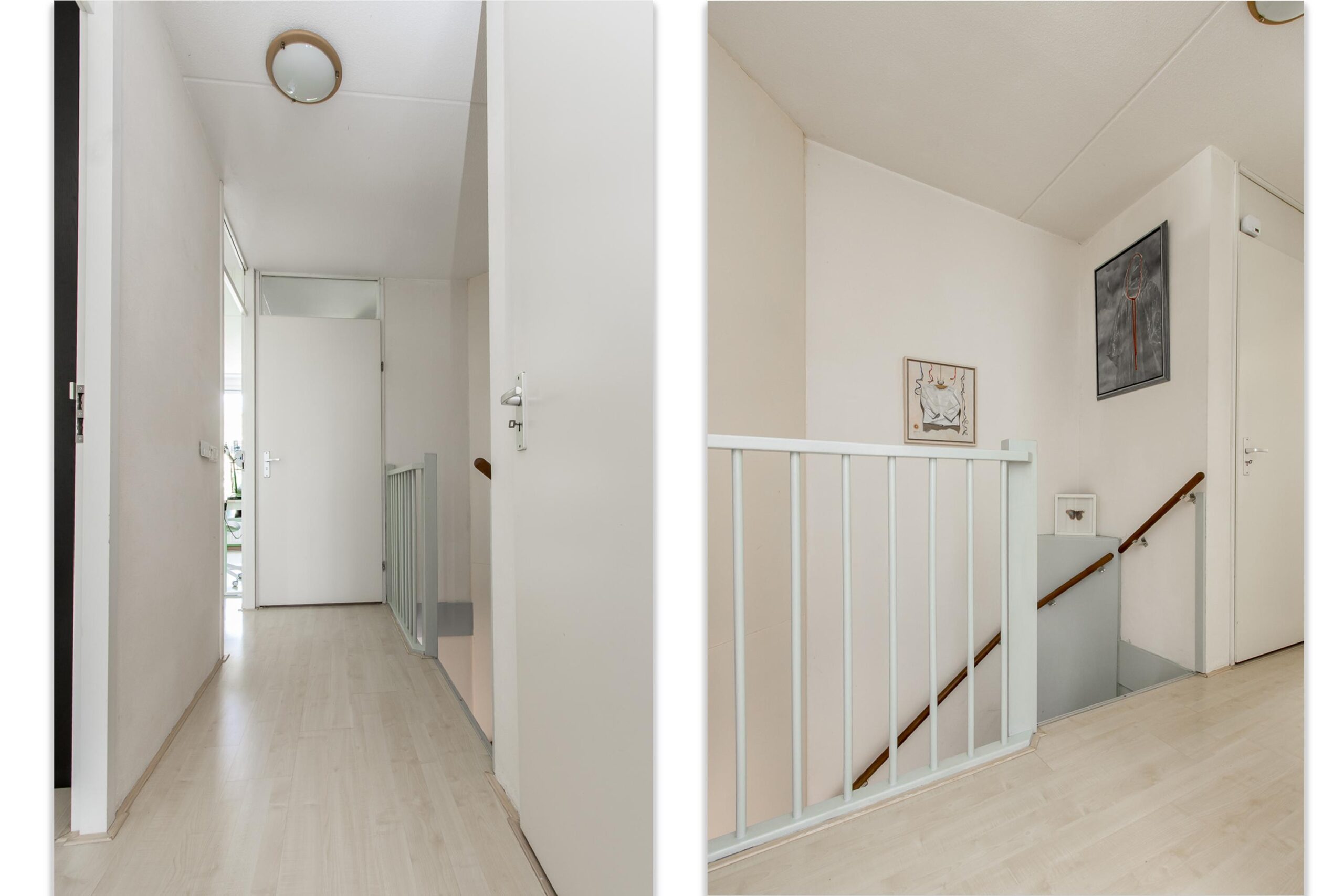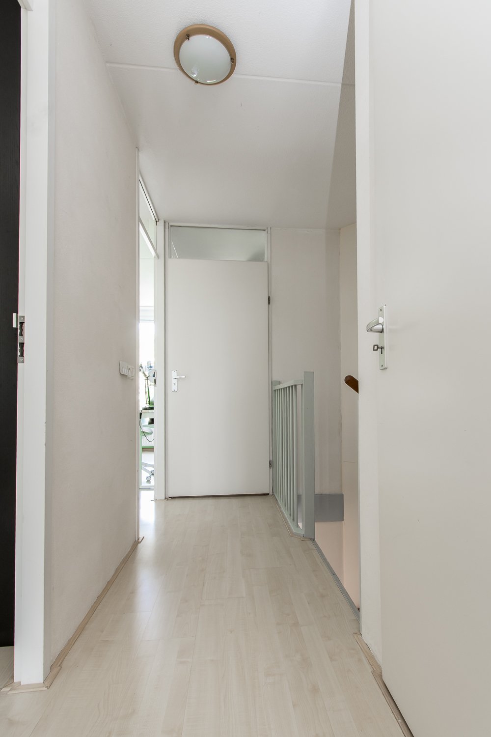 Eerste verdieping: de overloop geeft toegang tot 3 slaapkamers, badkamer v.v. douche, wastafel en toilet en vaste kast met witgoedaansluiting en C.V. installatie.