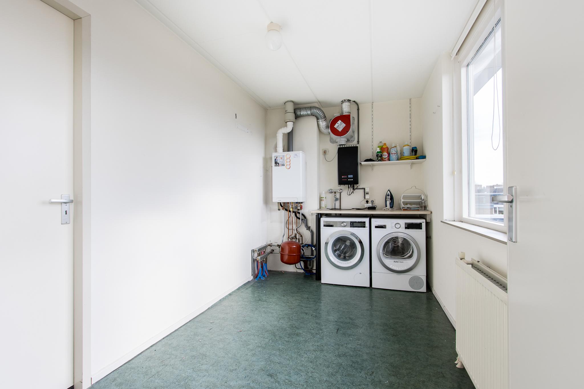 Tweede verdieping: de tweede verdieping biedt nog eens twee slaapkamers, een praktische wasruimte met c.v.-installatie en witgoedaansluitingen, en een loopdeur naar het royale dakterras van 24 m².