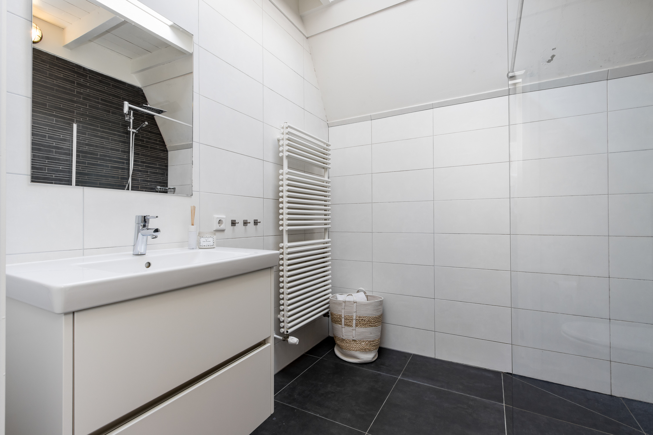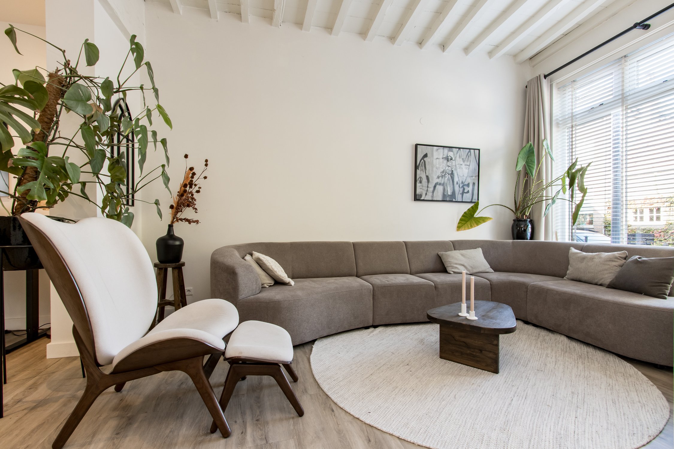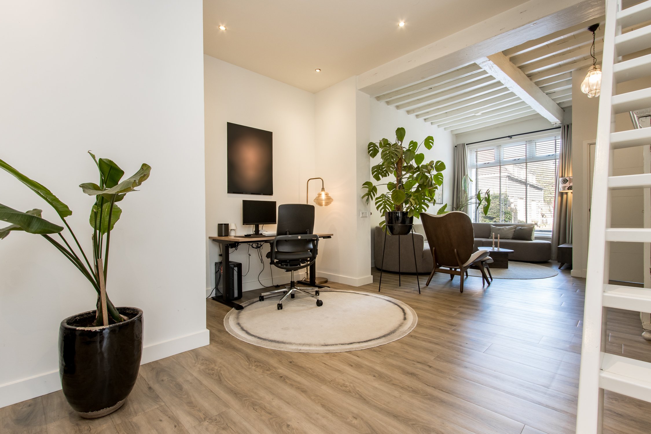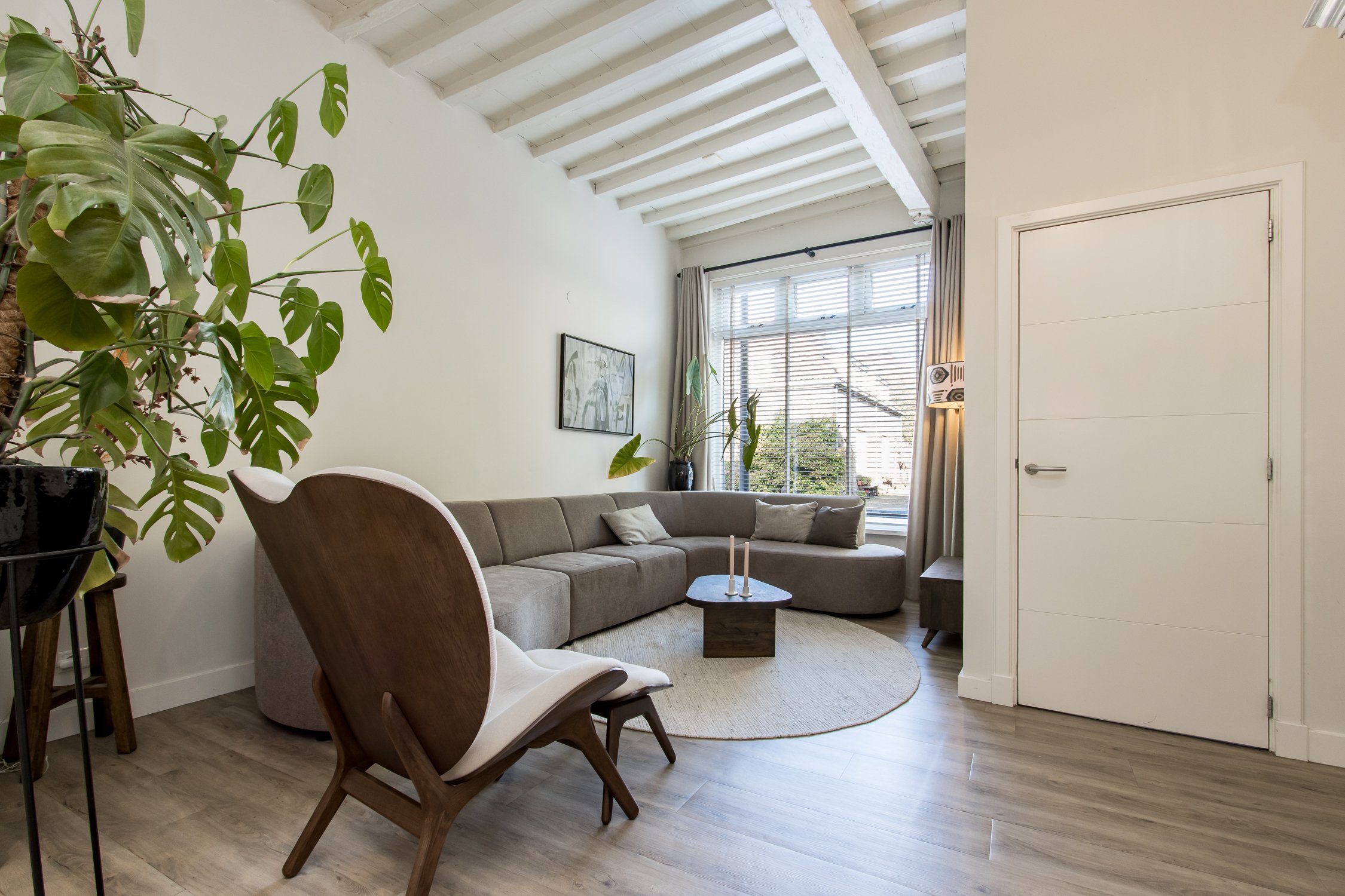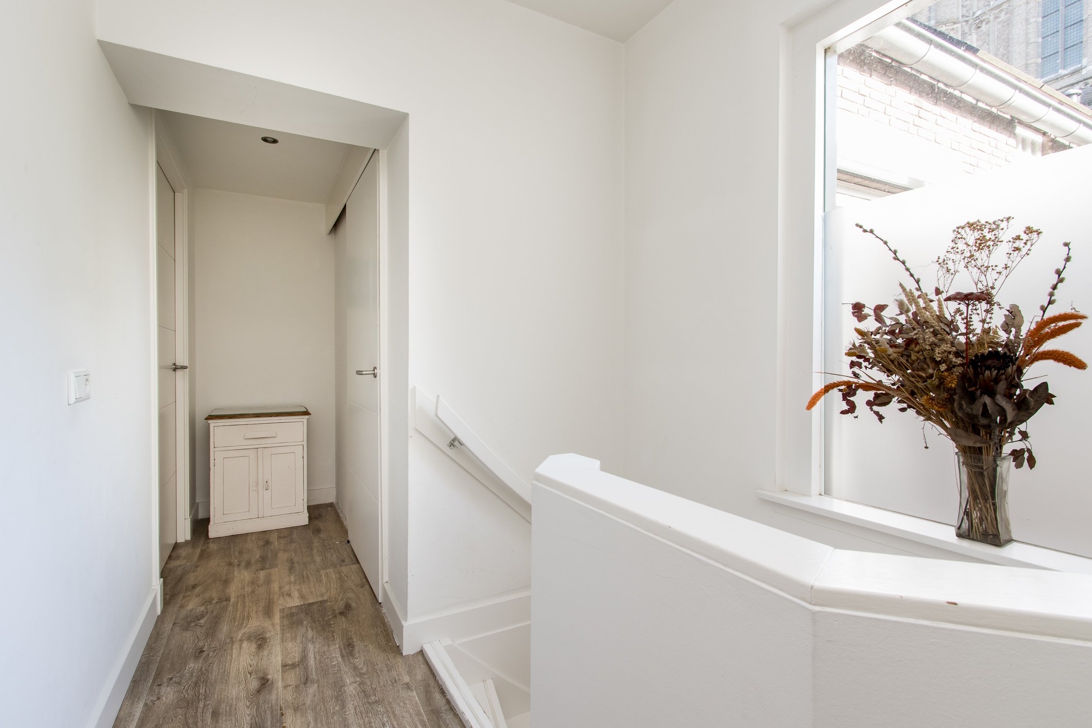 De begane grond is recent gerenoveerd en ademt warmte en sfeer. Aan de voorzijde bevindt zich een knusse zithoek met uitzicht op het gezellige straatbeeld. Achterin ligt de moderne woonkeuken, voorzien van een stijlvol spoeleiland en royale eetkamer. Vanuit hier openen de dubbele tuindeuren naar de onderhoudsvriendelijke stadstuin – een sfeervolle plek waar je in alle rust kunt genieten van de middagzon.