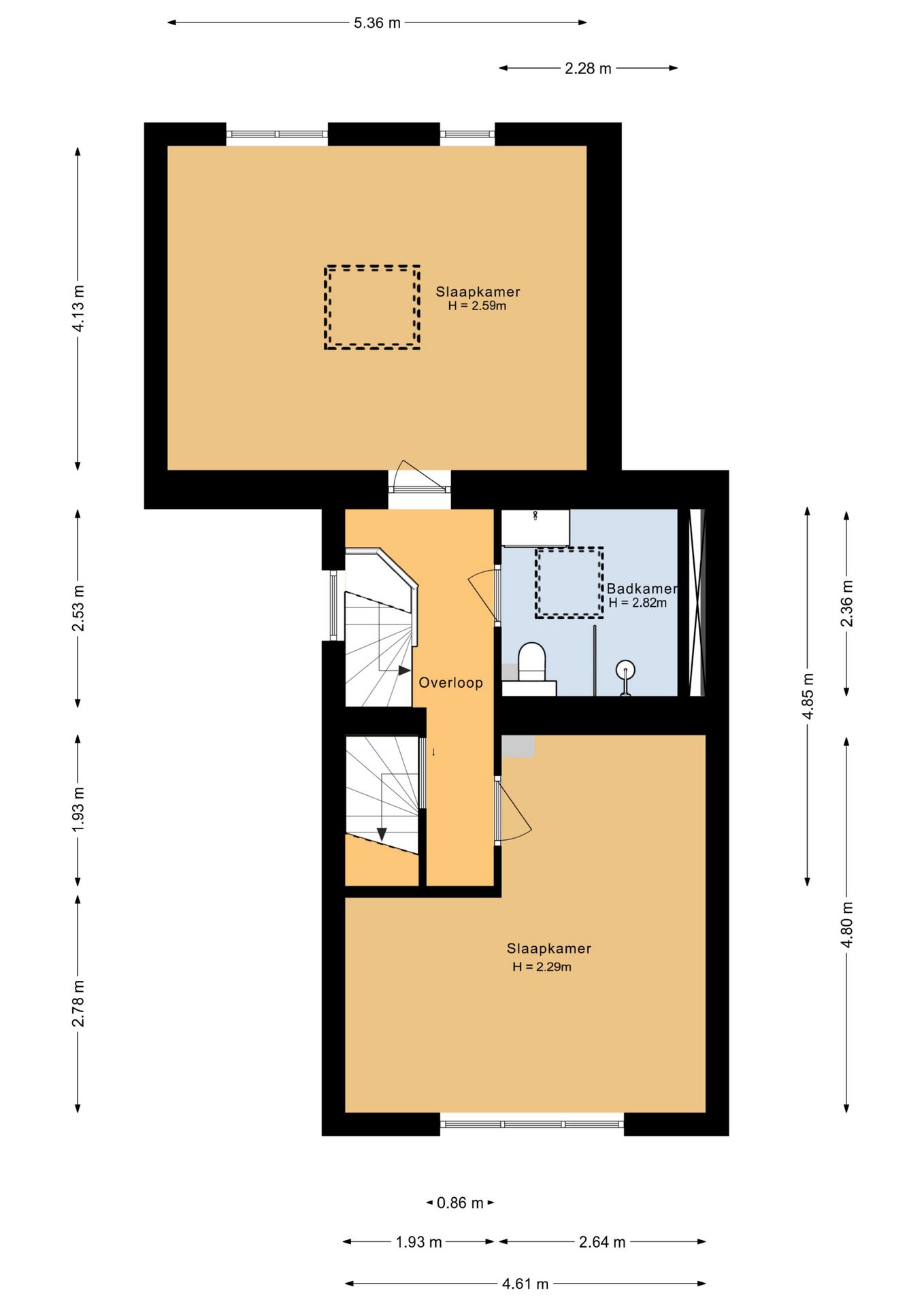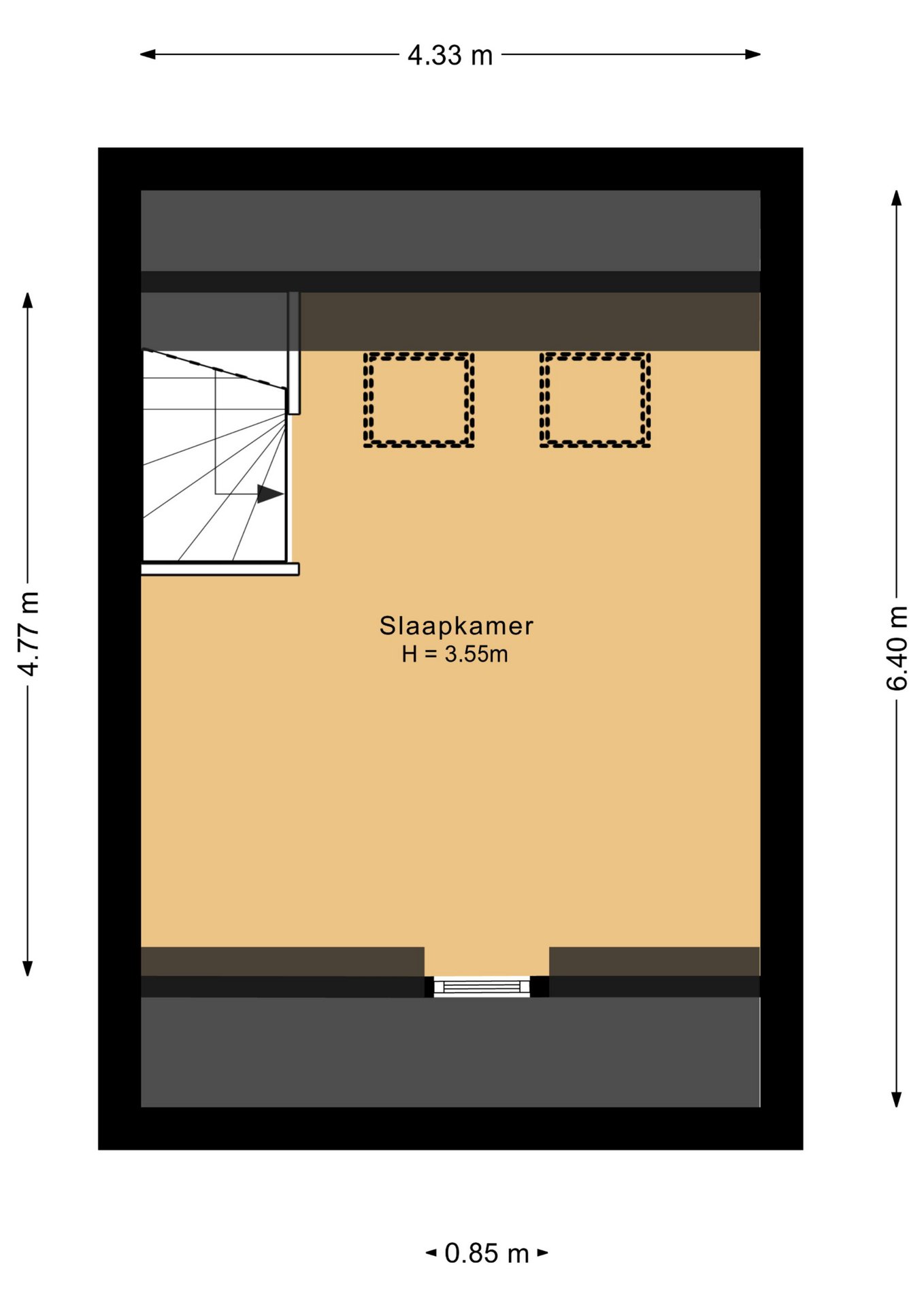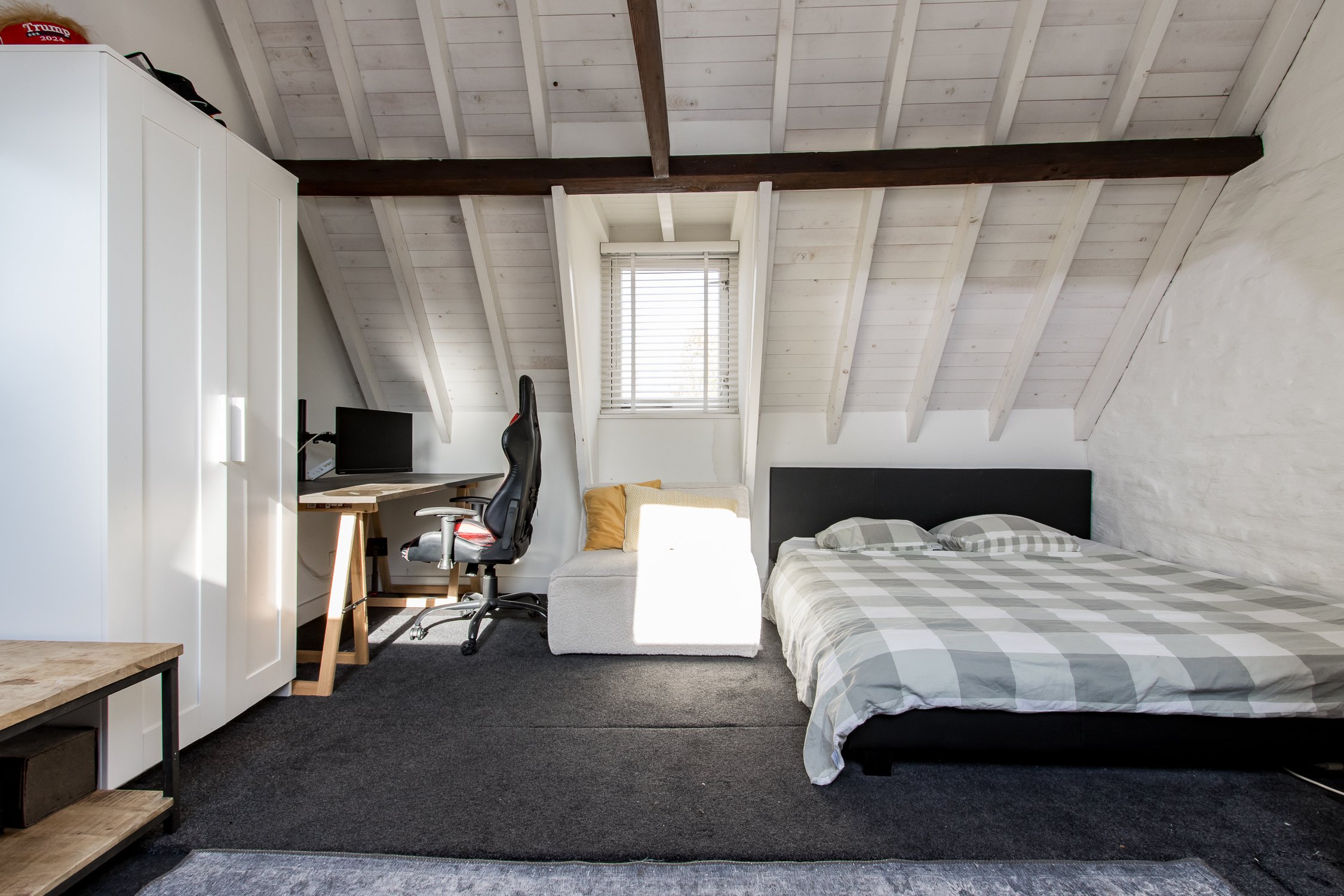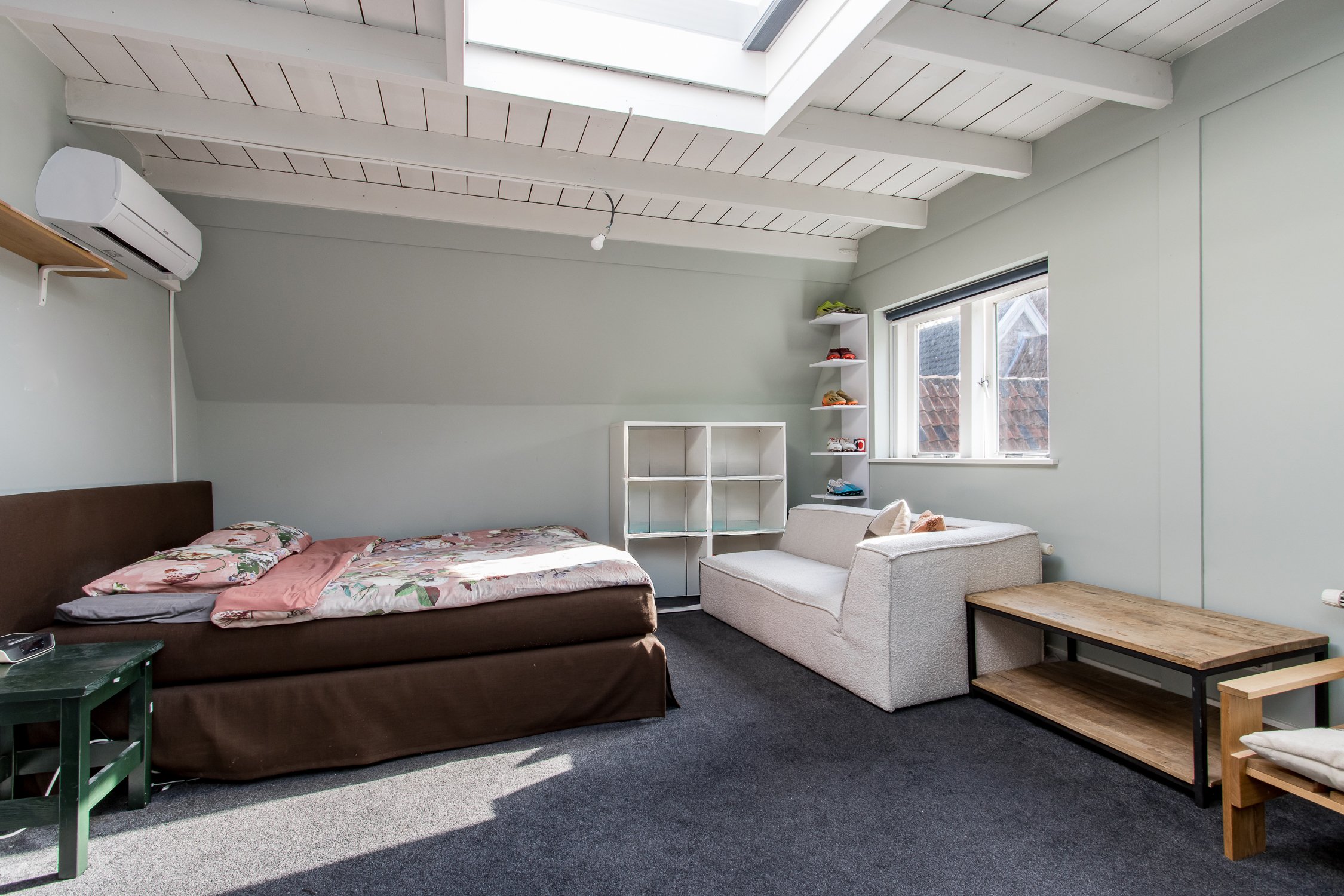 Tweede verdieping: de tweede verdieping biedt een grote, open ruimte met veel lichtinval, dankzij een raam aan de voorzijde en twee dakramen aan de achterzijde. Deze verdieping is veelzijdig te gebruiken en leent zich uitstekend als slaapkamer, hobbyruimte of werkkamer. De open indeling biedt flexibiliteit en creëert een lichte, aangename sfeer, zodat deze verdieping naar wens kan worden ingericht.