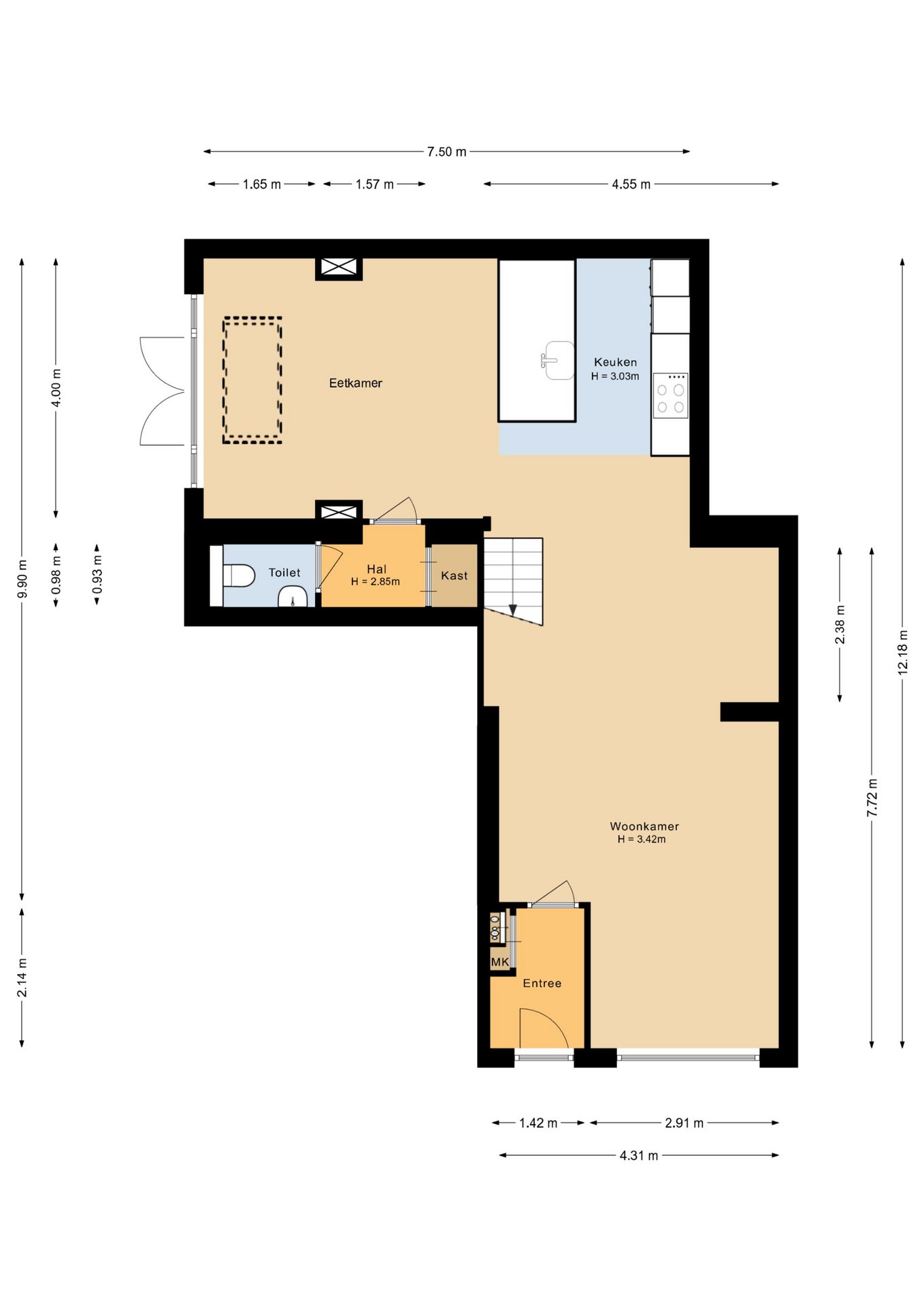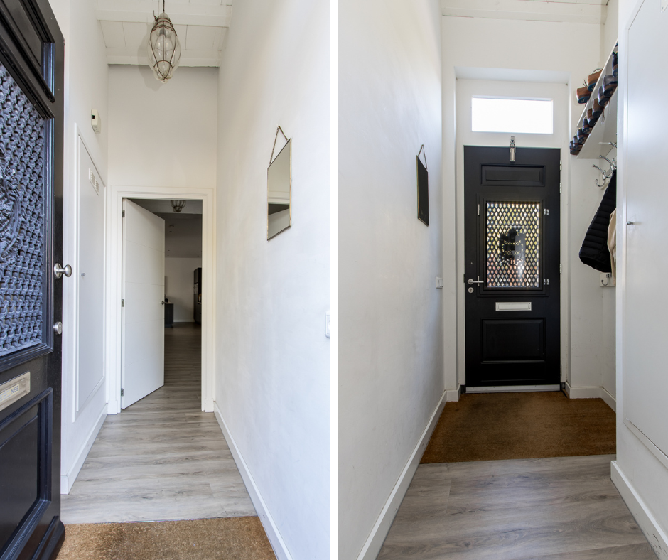 Indeling woonhuis: de entree geeft toegang tot het halletje met de meterkast en ruimte voor jassen. Vanuit hier stap je de sfeervolle woonkamer binnen. De zithoek aan de voorzijde biedt een mooi uitzicht op de Lange Strikstraat en een glimp van de Gasthuistoren, waardoor de historische charme van Zaltbommel direct voelbaar is.