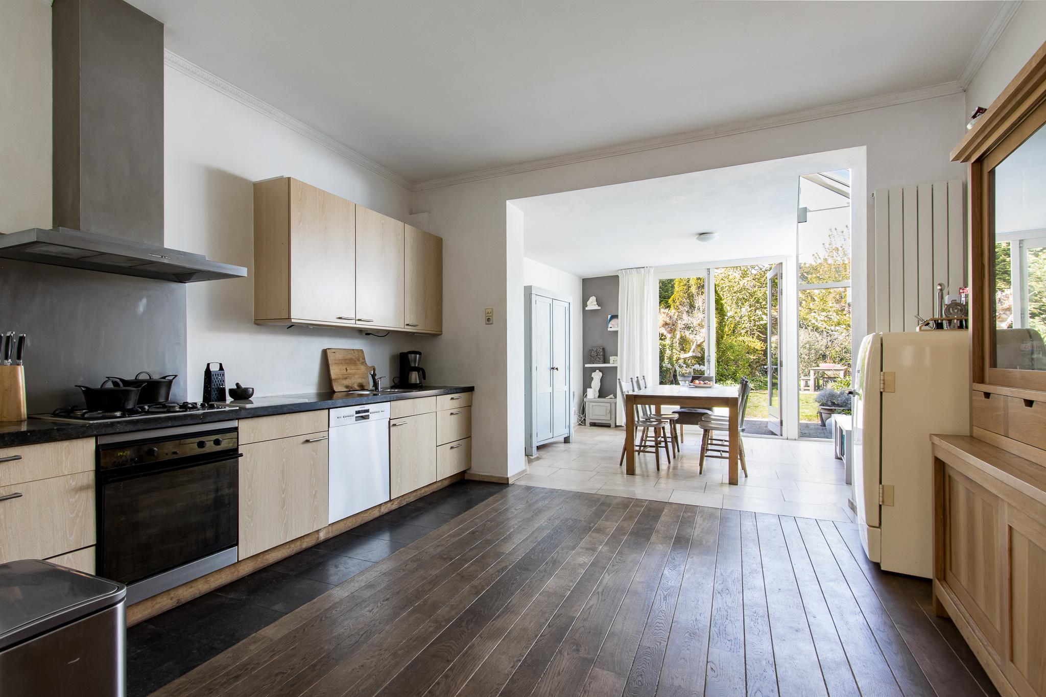 Authentieke details zoals de glas-in-loodramen geven het huis een warme, unieke uitstraling. De uitbouw aan de achterzijde vormt een prachtige tuinkamer: een lichte, uitnodigende ruimte waar je het hele jaar door van het groen in je achtertuin geniet. En wát voor tuin! Diep, beschut en vol privacy — een zeldzaamheid midden in de stad. Of je nu houdt van tuinieren, buiten eten of gewoon in alle rust een boek wilt lezen, hier vind je je plek.
