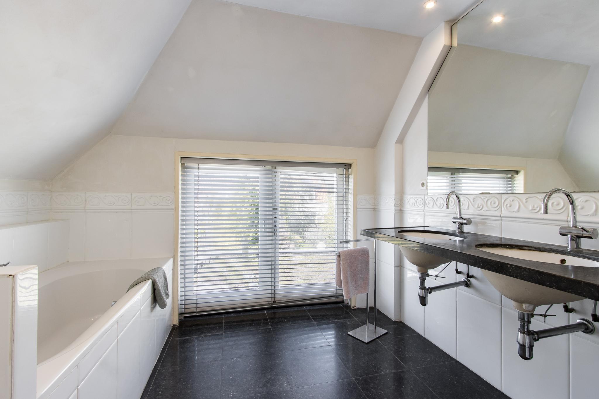 Eerste verdieping: de overloop geeft toegang tot drie slaapkamers en een royale badkamer die is voorzien van een ligbad, dubbele wastafel, wandcloset, ruime inloopdouche en vloerverwarming. Alle slaapkamers beschikken over een eigen vaste kast.