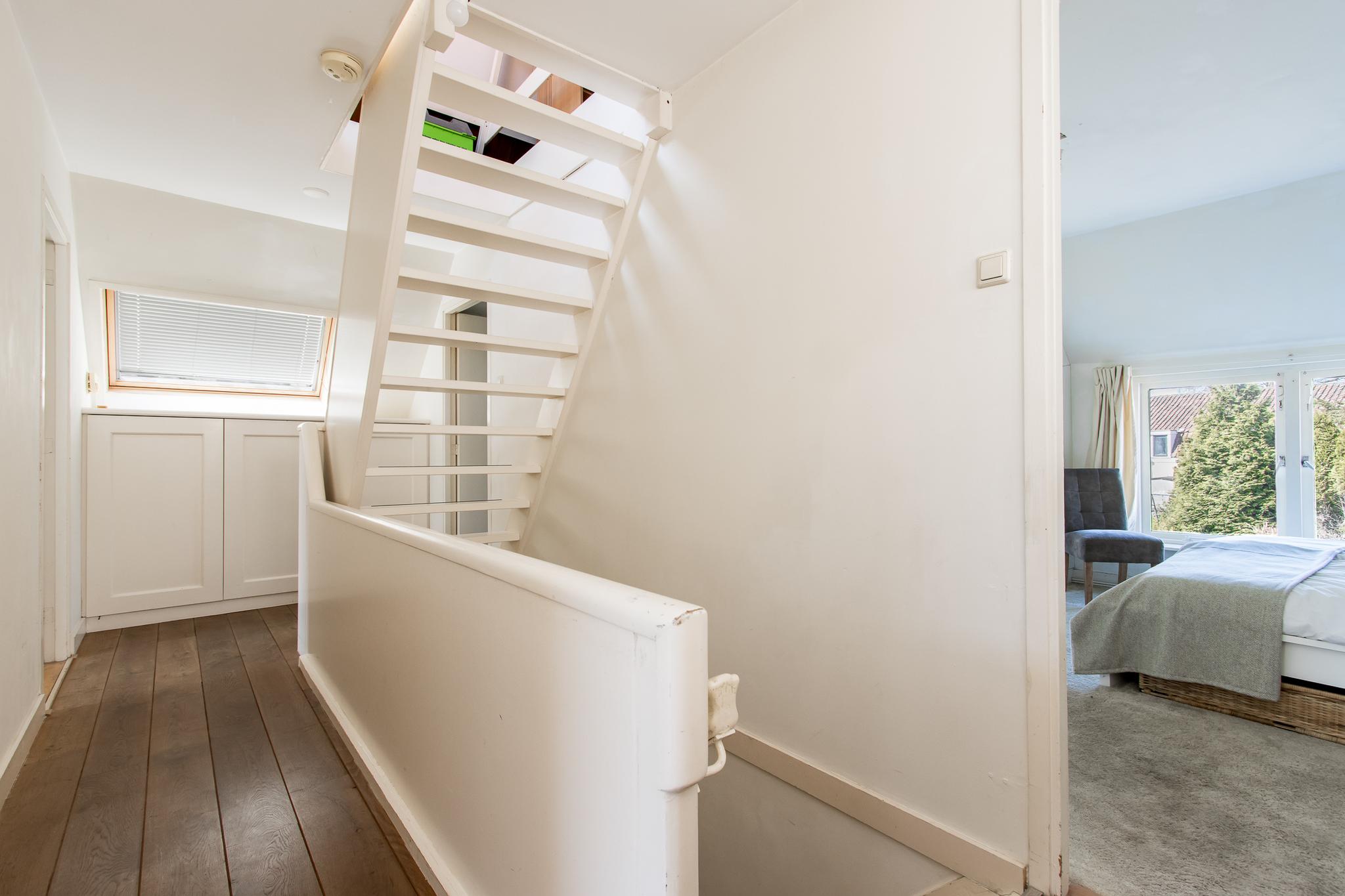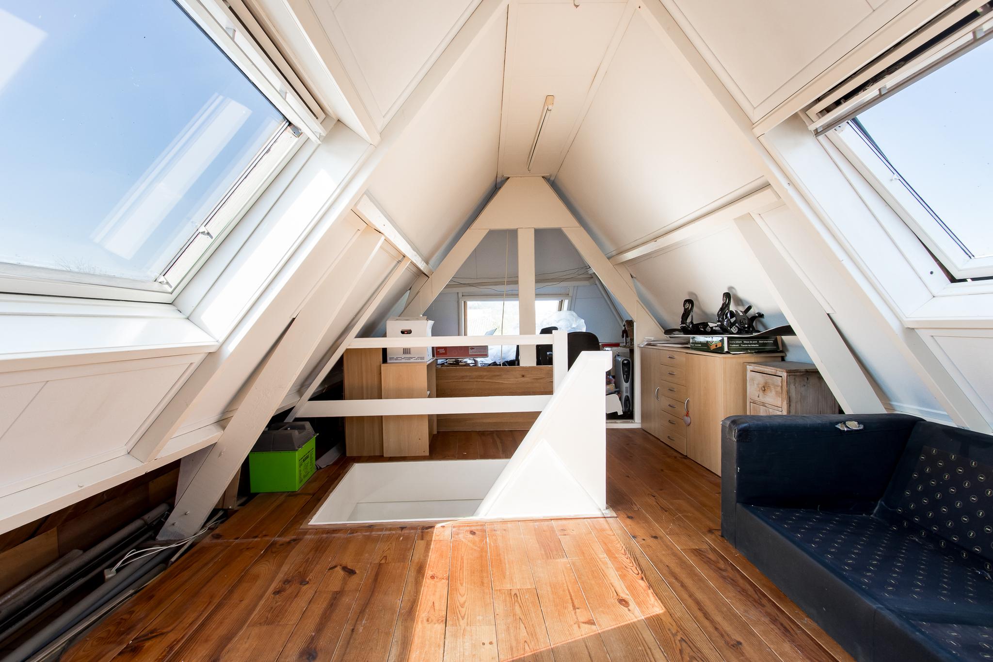 Tweede verdieping: de tweede verdieping biedt een open zolderruimte met een nokhoogte van 2,39 meter. Dakvensters aan beide zijden zorgen voor veel daglicht en een prachtig uitzicht op de toren. Een ideale, lichte plek voor een (thuis)werkplek, studeerkamer, speelruimte of hobbykamer.