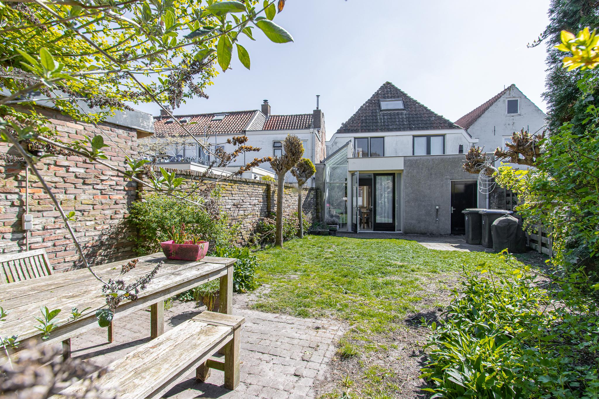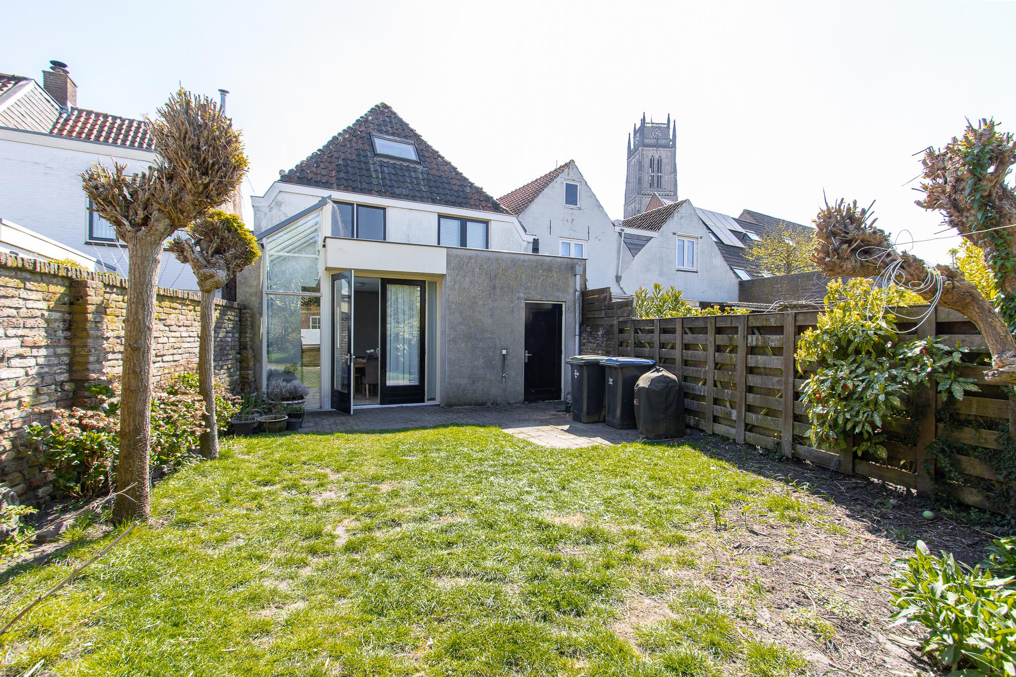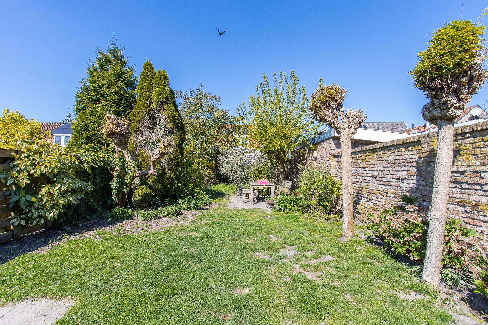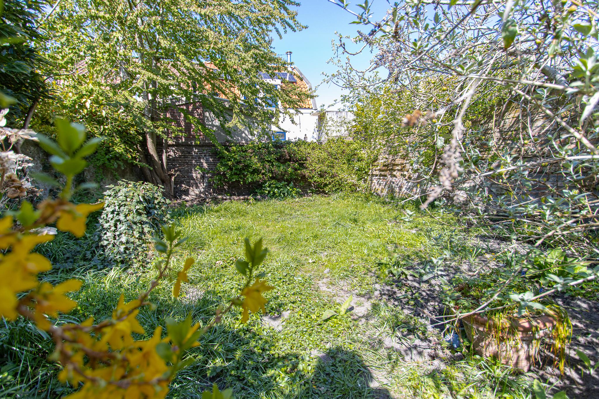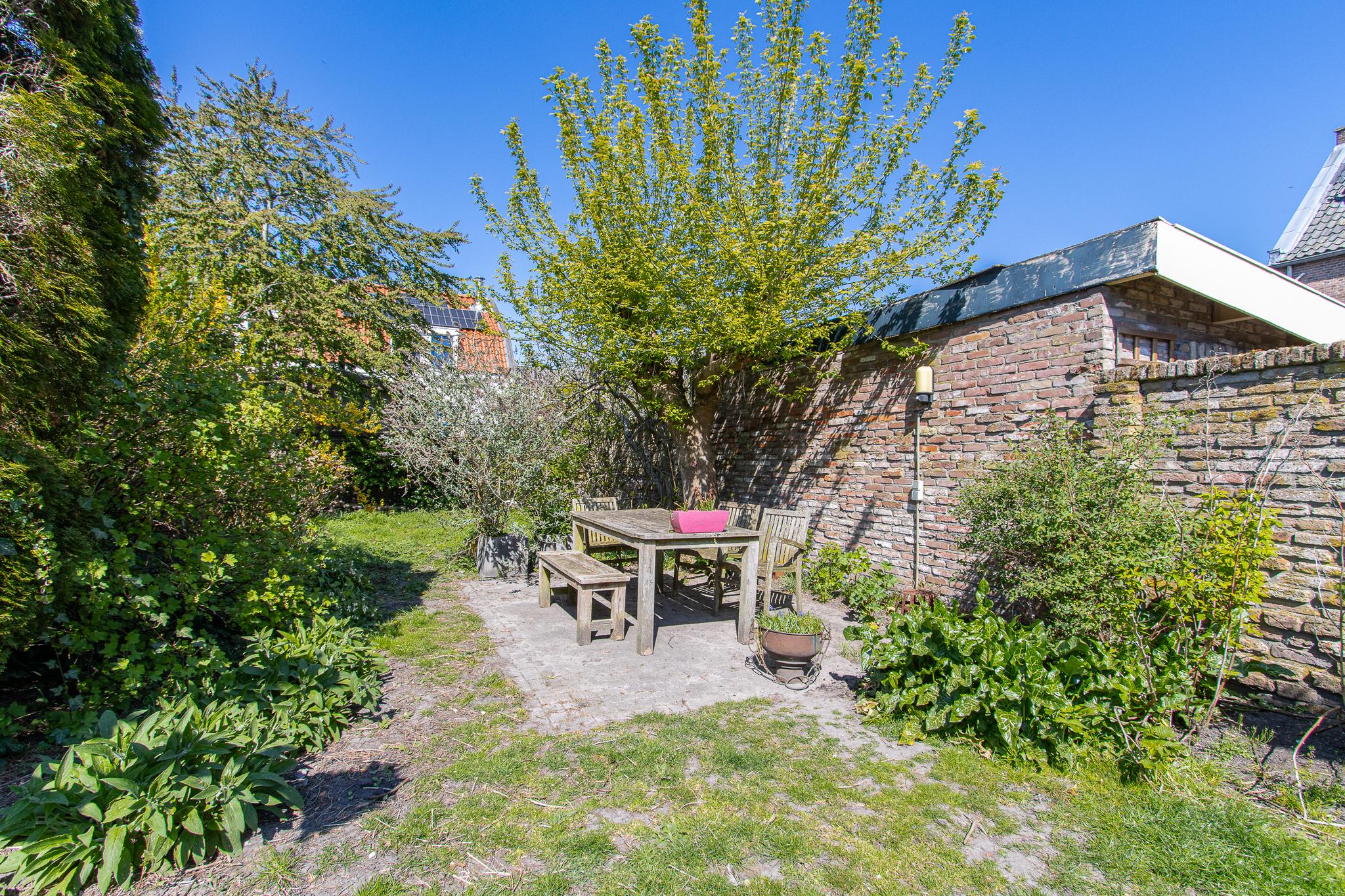 Tuin: de op het noordwesten gelegen tuin is een heerlijk beschutte plek, waar je volop kunt genieten van het buitenleven. Dankzij de vrije ligging en een indrukwekkende diepte van bijna 22 meter profiteer je hier van veel zonuren gedurende de dag. Het geheel is sfeervol aangelegd met een groen gazon, weelderige borders met vaste planten, twee terrassen en fruitbomen. Een karakteristieke tuinmuur van kloostermoppen voegt een authentiek accent toe. Vanuit de tuin heb je bovendien een prachtig uitzicht op de Sint Maartenstoren — een uniek en steeds wisselend decor.