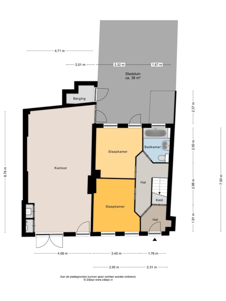 Woonhuis: de entree aan de rechterzijde biedt toegang tot de hal, slaapkamer voorzijde, (slaap)kamer met toegang tot de binnenplaats, badkamer met douche, ligbad, wastafel, toilet en trapopgang naar de eerste verdieping.