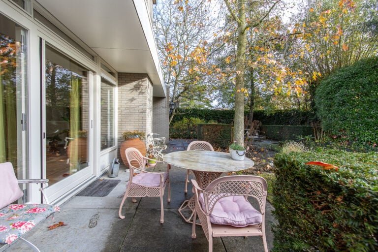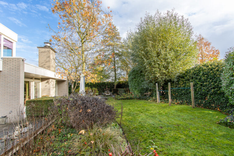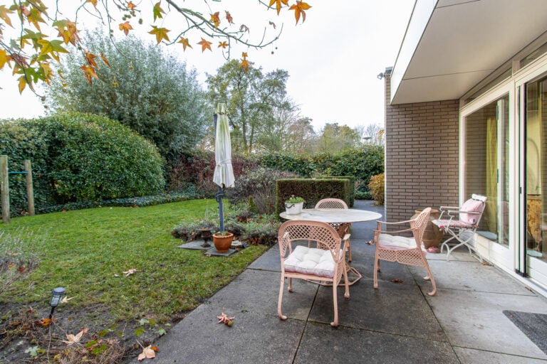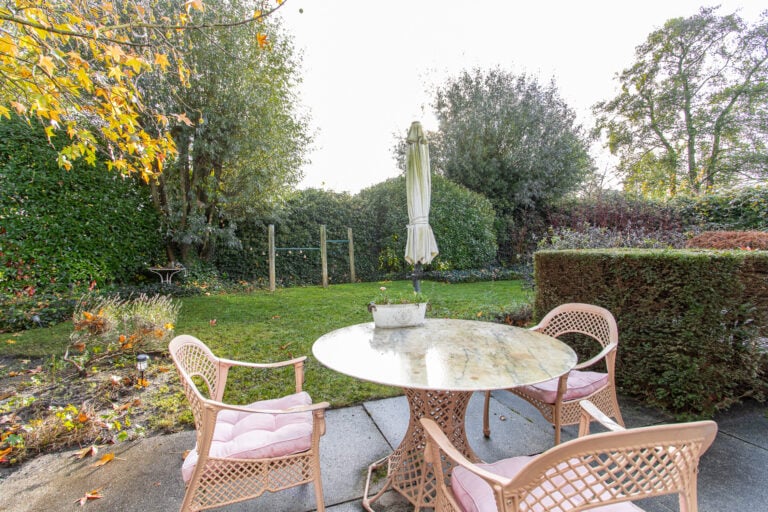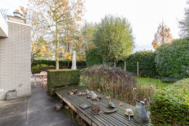 De fraai aangelegde tuin rondom de woning is een heerlijke plek om tot rust te komen. Dankzij de royale omvang geniet je hier van veel privacy, groene uitzichten en zowel zon- als schaduwplekken.