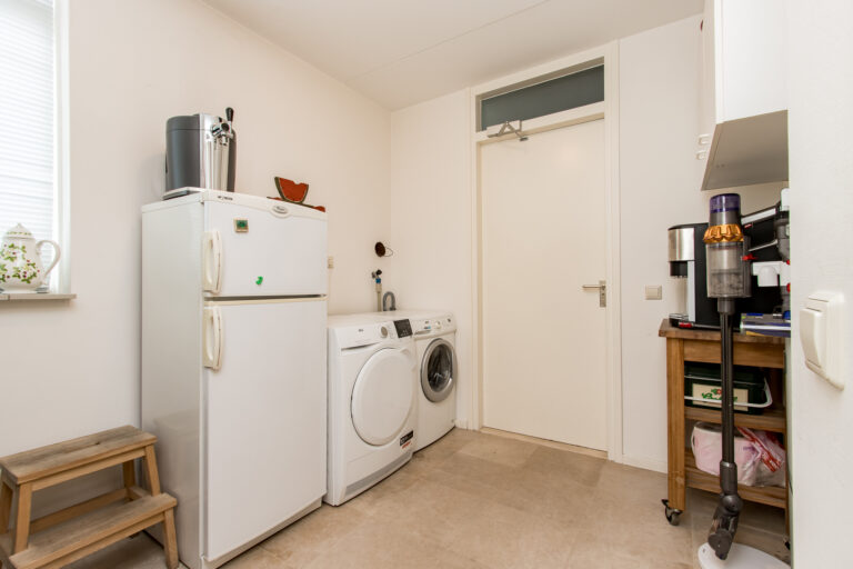 Op de begane grond bevindt zich tevens een gastenkamer met eigen douche en wastafel, waardoor de woning uitstekend levensloopbestendig te maken is. De bijkeuken is uitgerust met witgoedaansluitingen en biedt toegang tot de berging. De berging is voorzien van een uitstortgootsteen, elektriciteit en een praktische buitendeur, ook is er een alarmsysteem aanwezig.