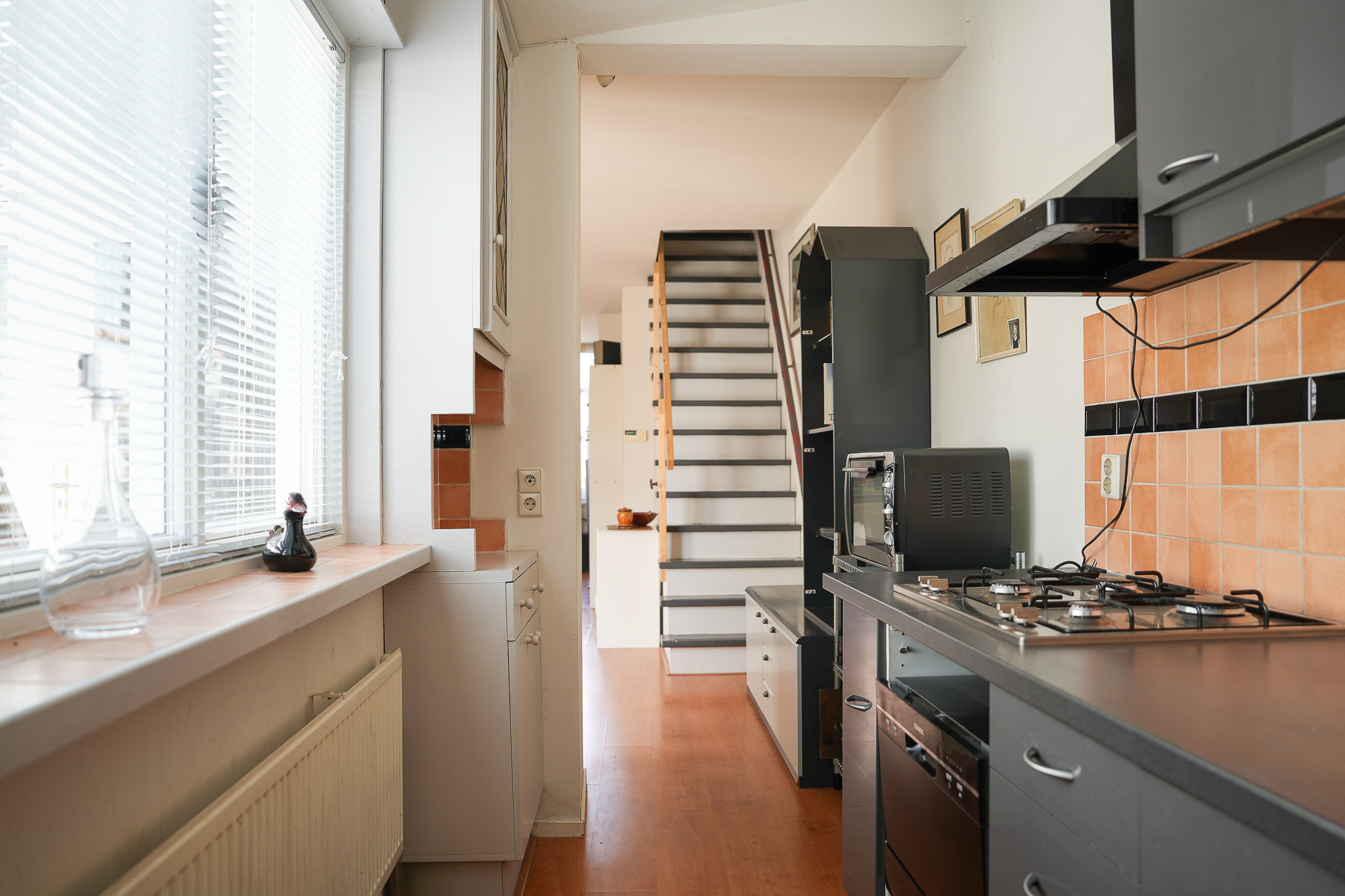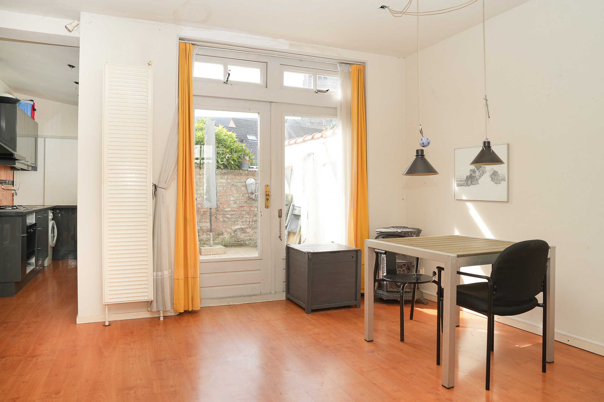 De woning straalt warmte en gezelligheid uit. De sfeervolle living aan de voorzijde is verrassend licht en biedt via openslaande deuren toegang tot een beschutte patio: jouw eigen stadsoase, perfect voor een kop koffie in de ochtendzon of een borrel aan het einde van de dag. De half open keuken aan de achterzijde sluit daar naadloos op aan.