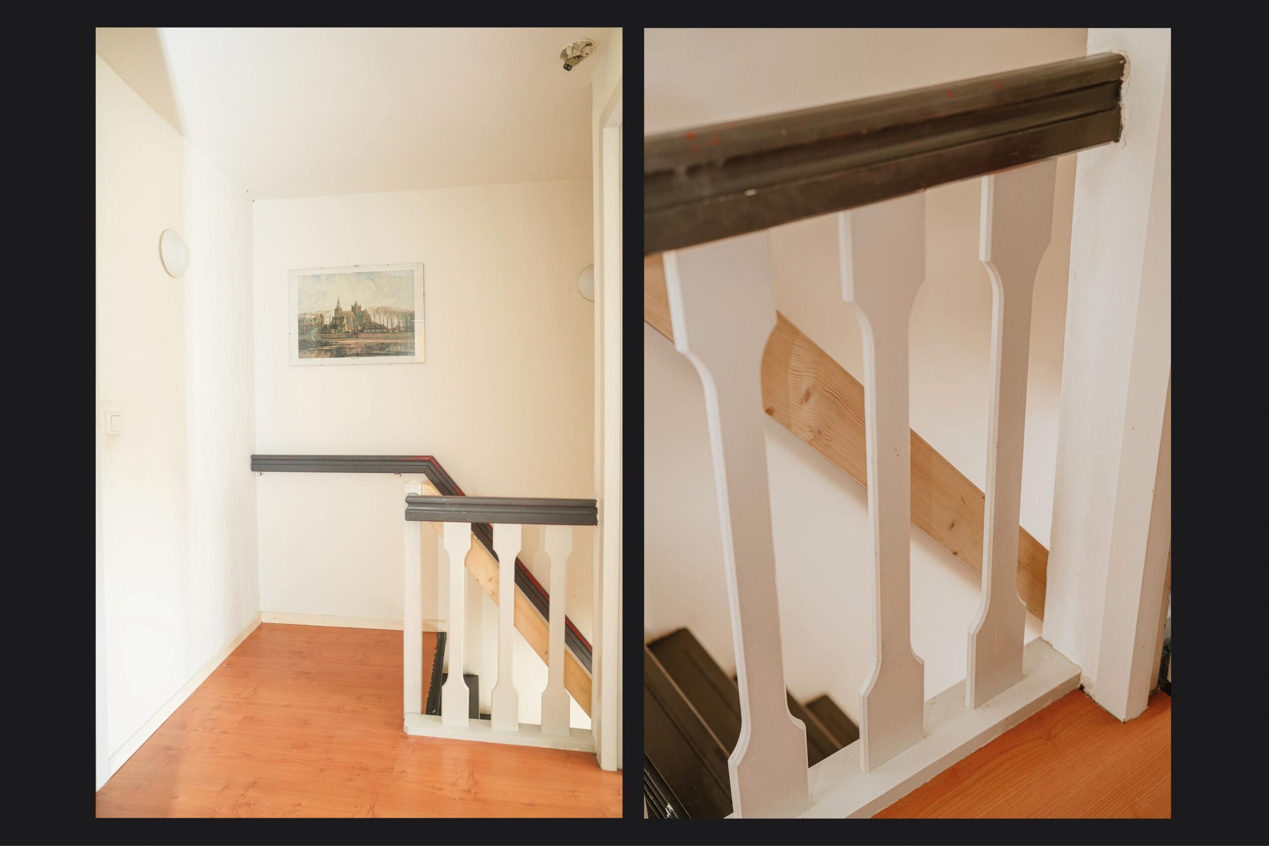 Eerste verdieping: de overloop leidt naar 2 slaapkamers en de badkamer. Een vlizotrap biedt toegang naar de vliering.