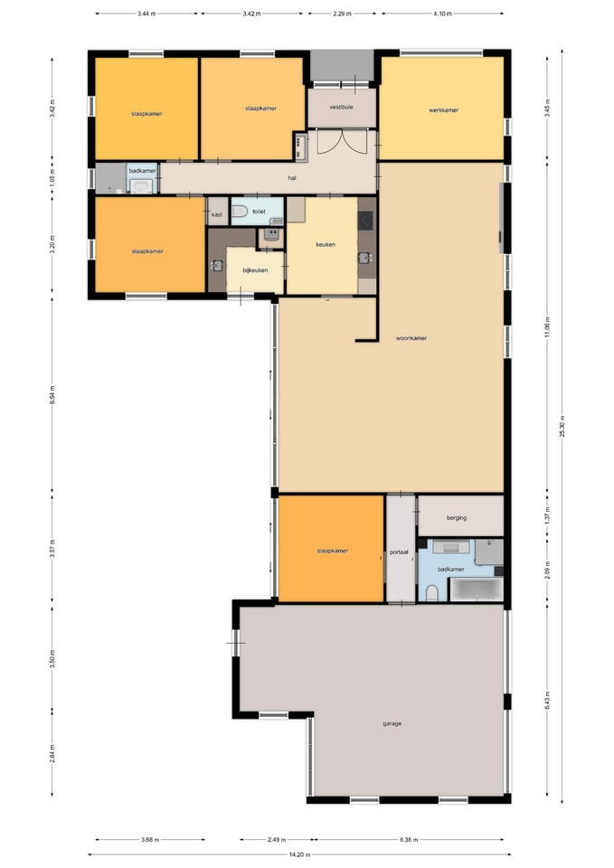 • 4 slaapkamers en 1 werkkamer;