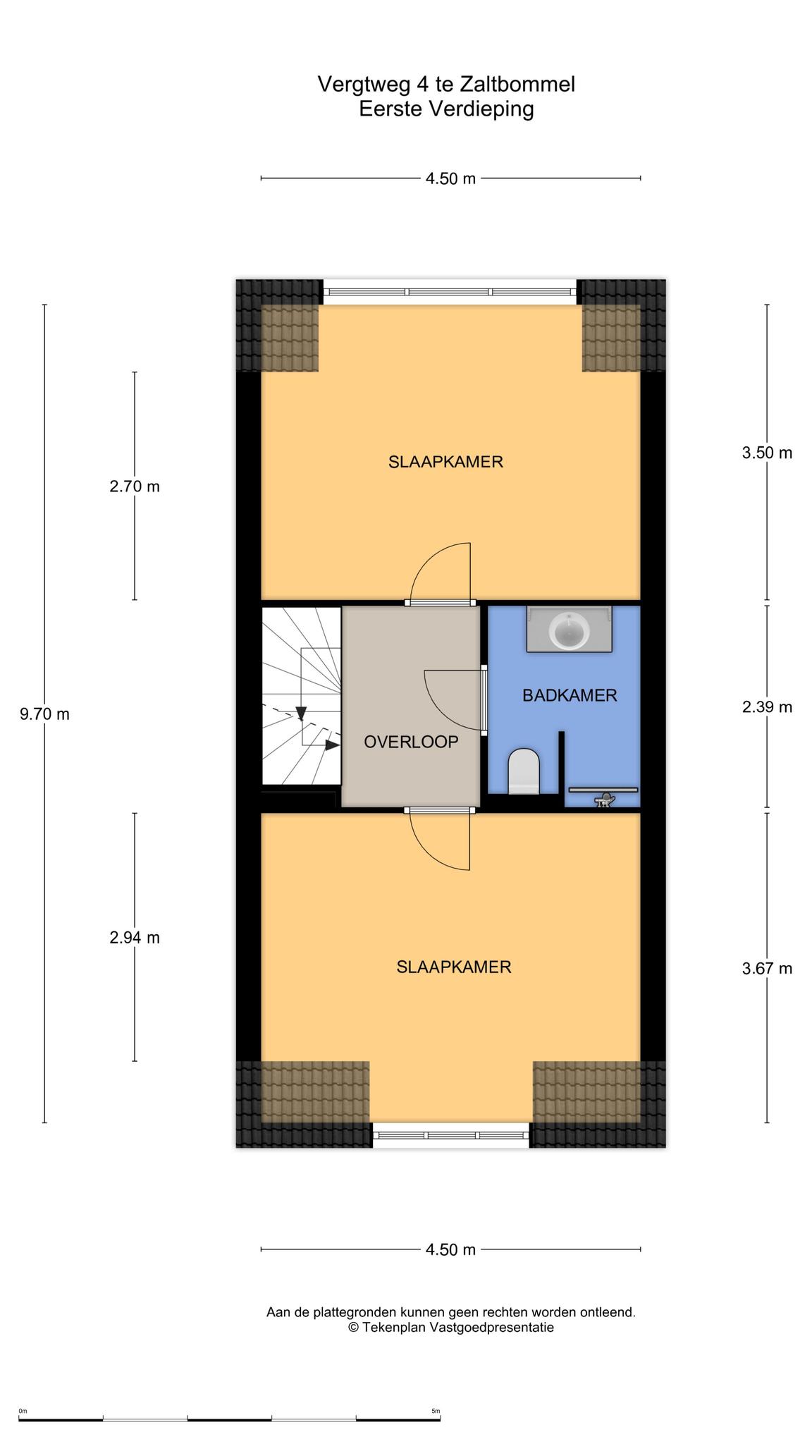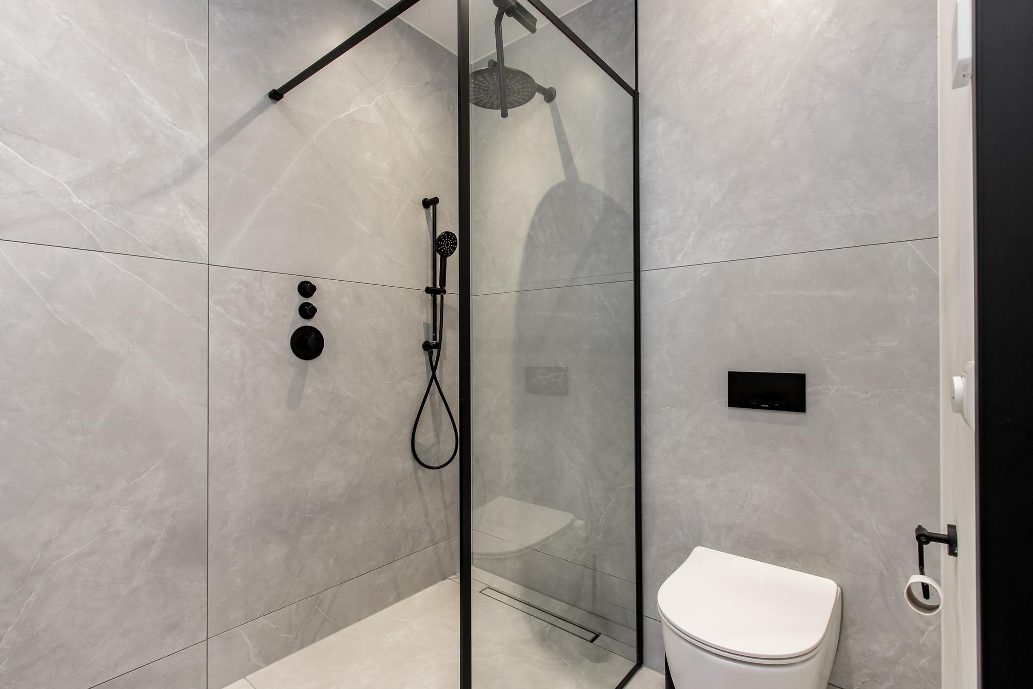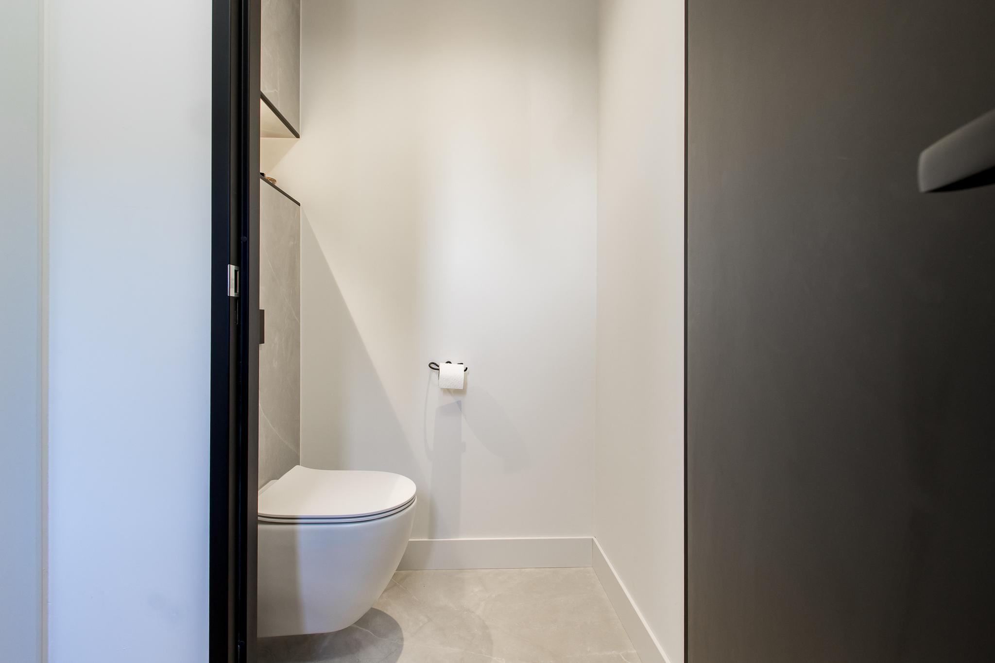 Eerste verdieping: de overloop geeft toegang tot twee ruime slaapkamers en een moderne badkamer, compleet met inloopdouche, wastafelmeubel en tweede toilet.
