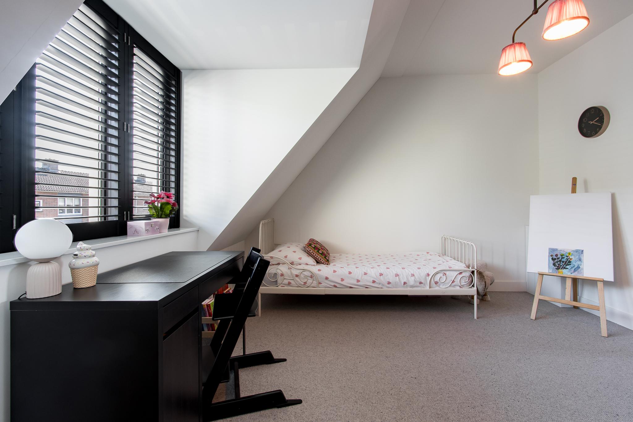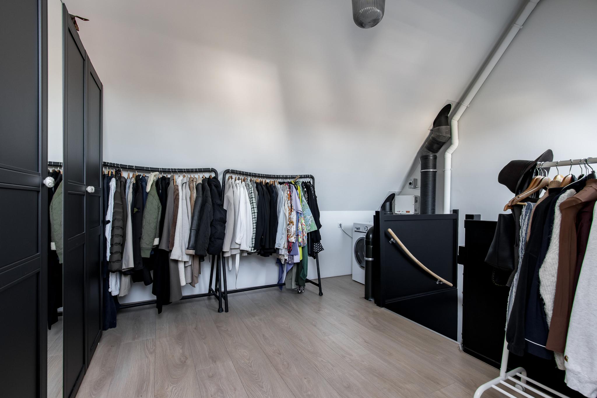 Tweede verdieping: een vaste trap leidt naar de royale open zolderruimte, waar de aansluitingen voor witgoed zijn. Dankzij twee dakvensters geniet deze verdieping van volop daglicht, waardoor de ruimte uitstekend geschikt is voor het creëren van een extra (slaap)kamer.