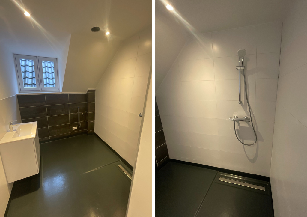 • Moderne badkamer met inloopdouche en wastafelmeubel;